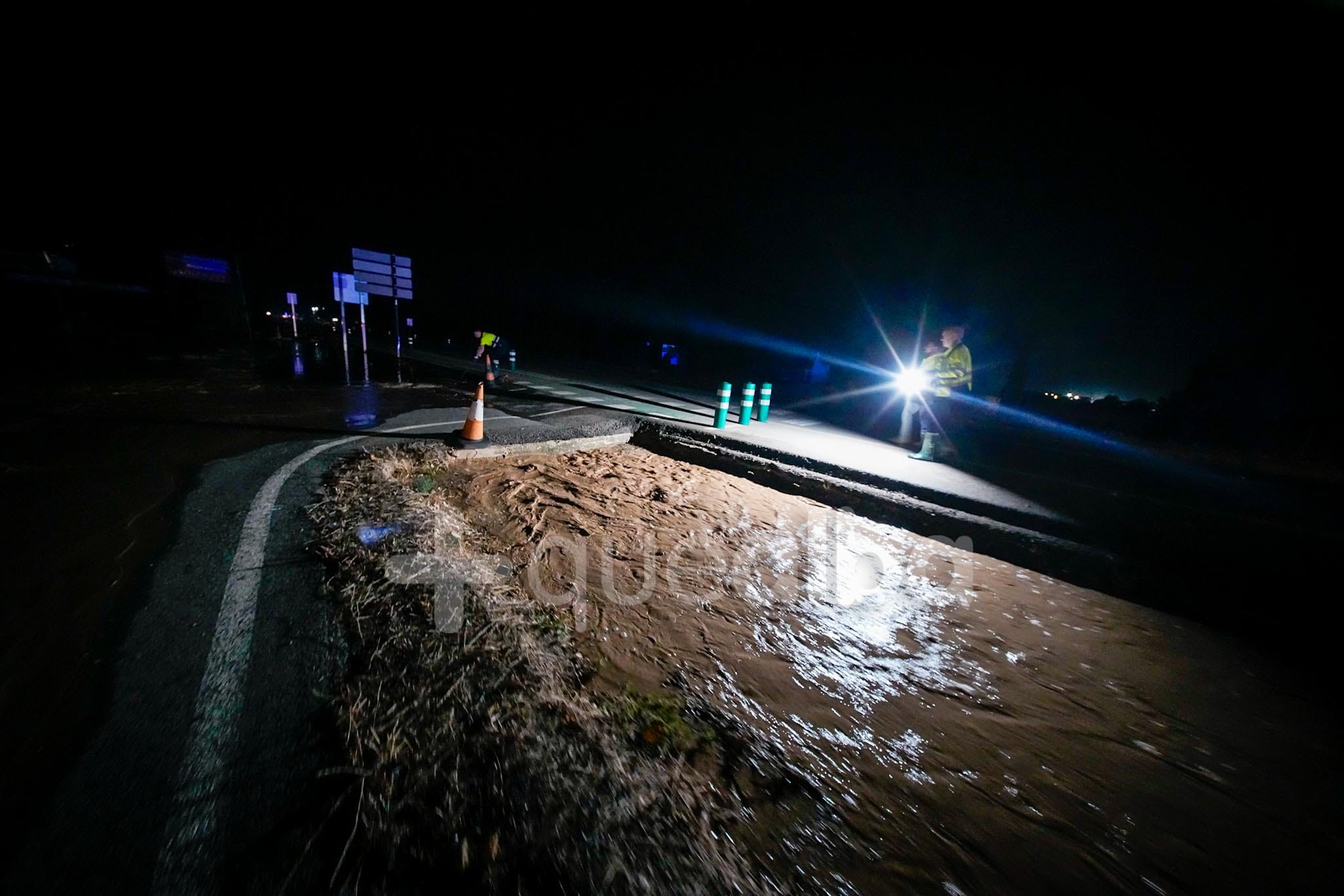 Alrededor de las 21.20 horas empezaba a llegar el agua y media hora después ya se podía ver a ambos lados de la calzada. El acceso está cortado y los vecinos siguen lo que sucede con temor.