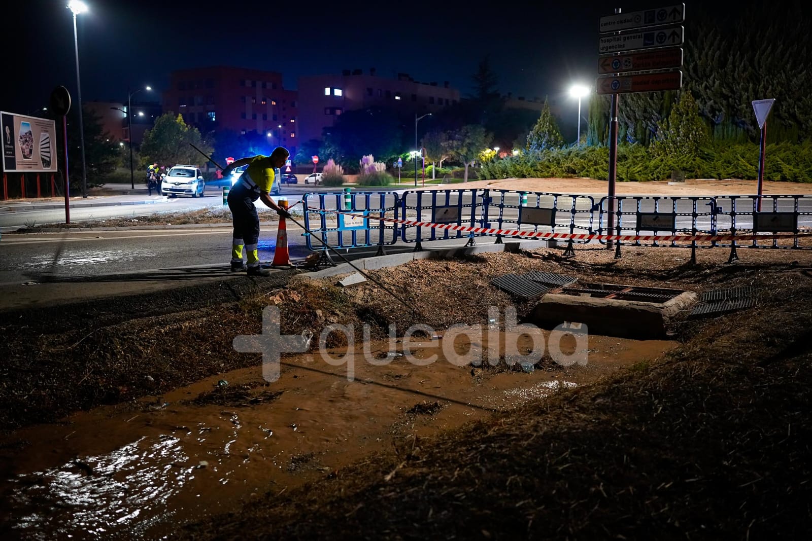 Alrededor de las 22 horas el operativo en la zona es importante, para vigilar lo que sucede y tratar de mitigar, en la mayor medida posible, los efectos de la tromba de agua que llega desde Chinchilla de Montearagón, donde se registraba una fuerte tormenta estática.