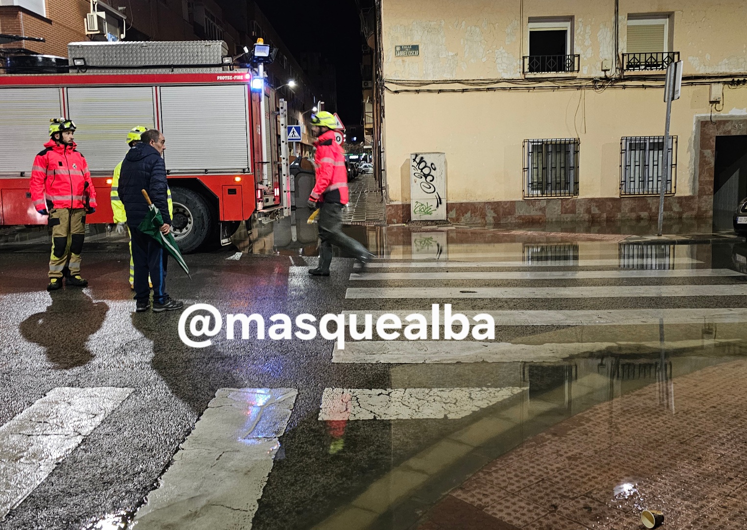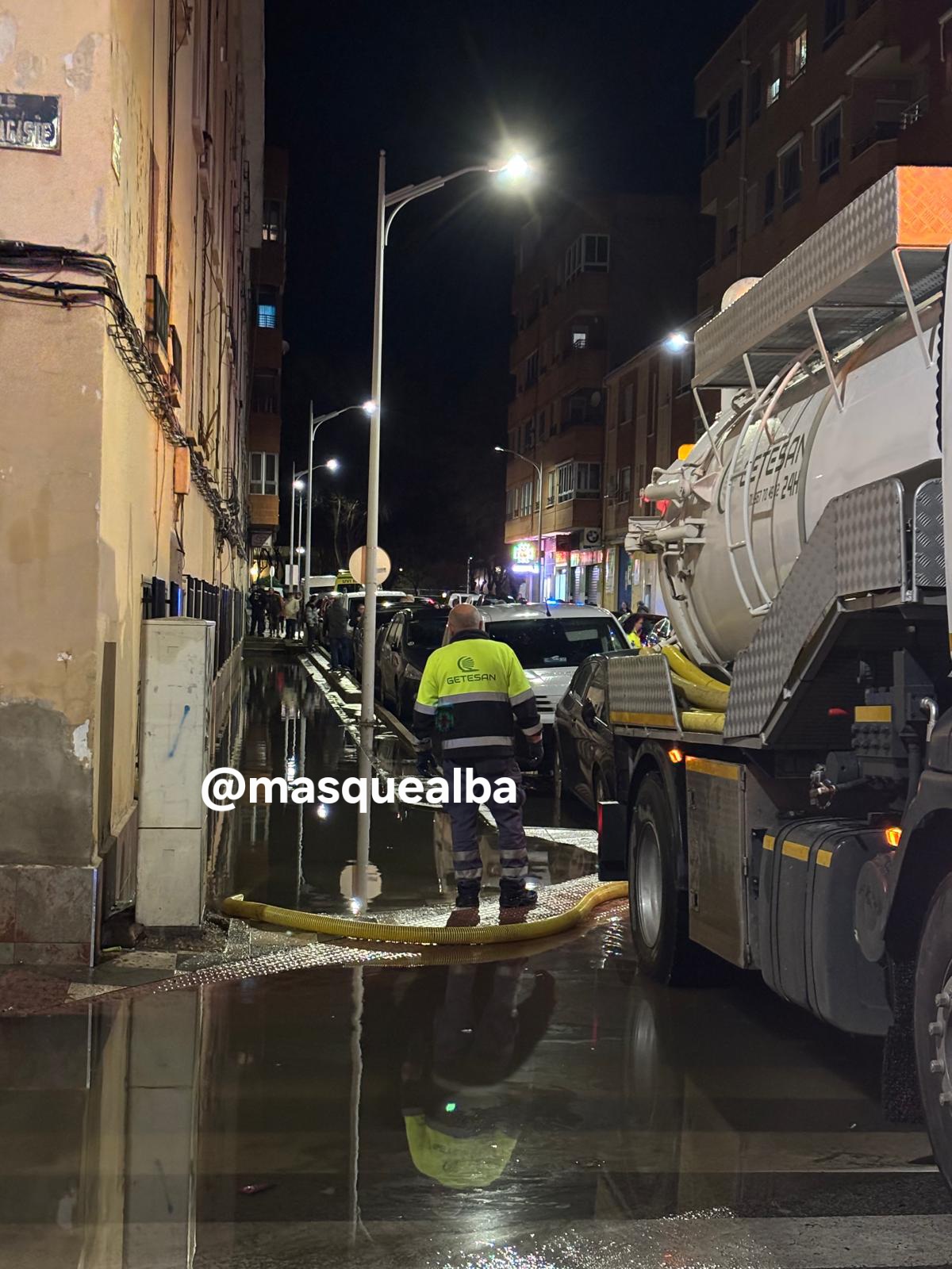 Bomberos de Albacete trabajan, en la tarde-noche de este lunes 9 de febrero, en considerables inundaciones en las calles Gabriel Ciscar y Juan de Toledo, como han informado a Masquealba desde este servicio.