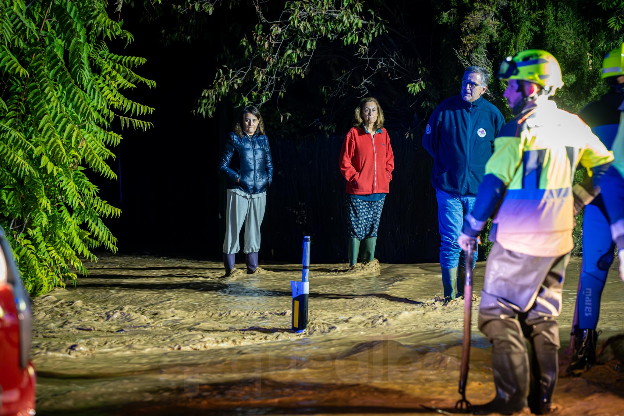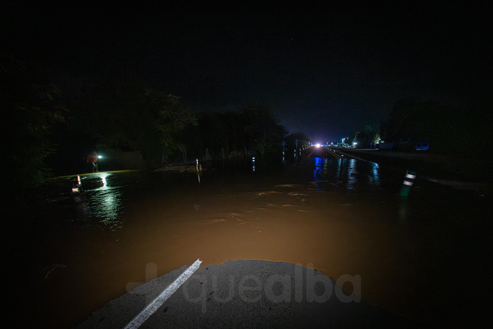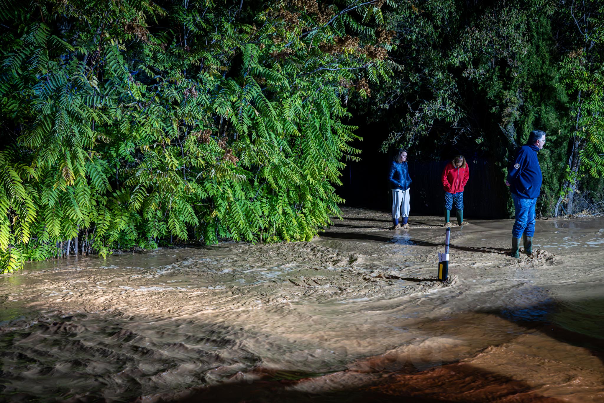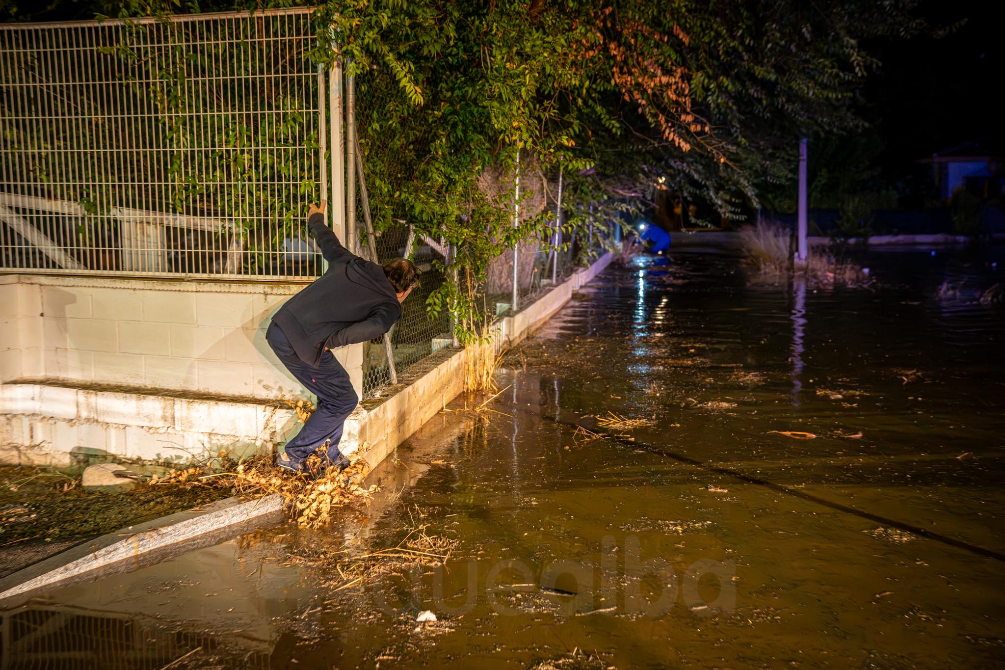Los primeros vecinos que comenzaron a salir, temerosos, para ver el curso del agua, fueron los de las nueve familias que viven por la zona de La Casita. A uno señor le veíamos tratando de retirar ramas para que el agua no se acumulara alrededor de su casa; mientras otra vecina salía -en la ropa con la que estaba por casa y por su móvil como linterna- a comprobar la evolución de las inundaciones, porque estaba sola en casa con sus padres.