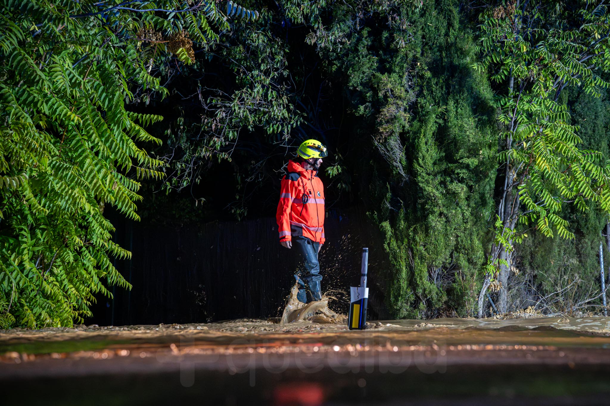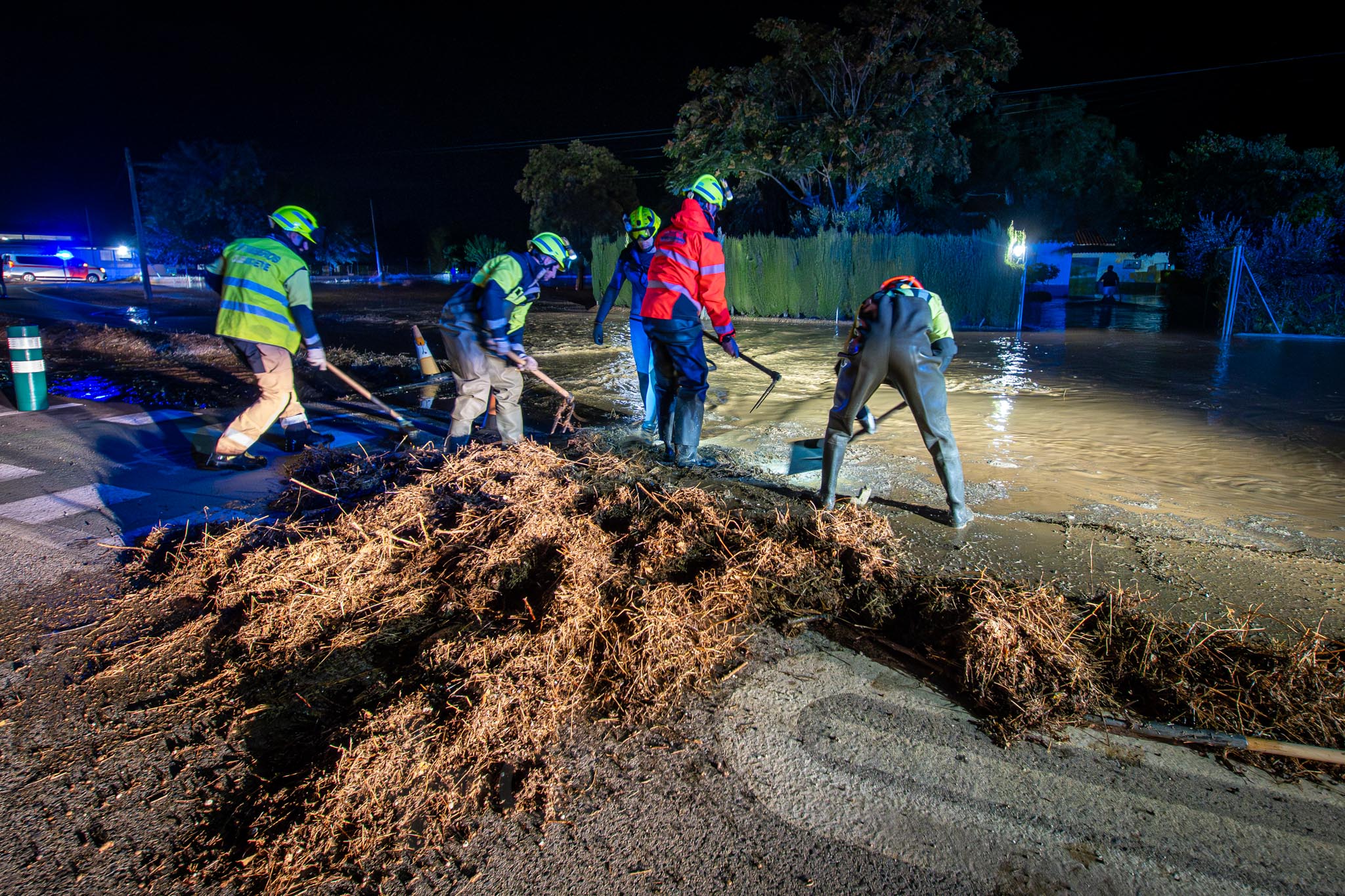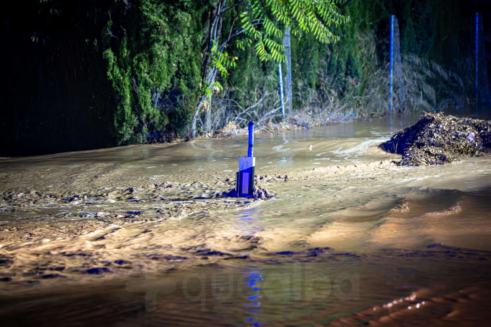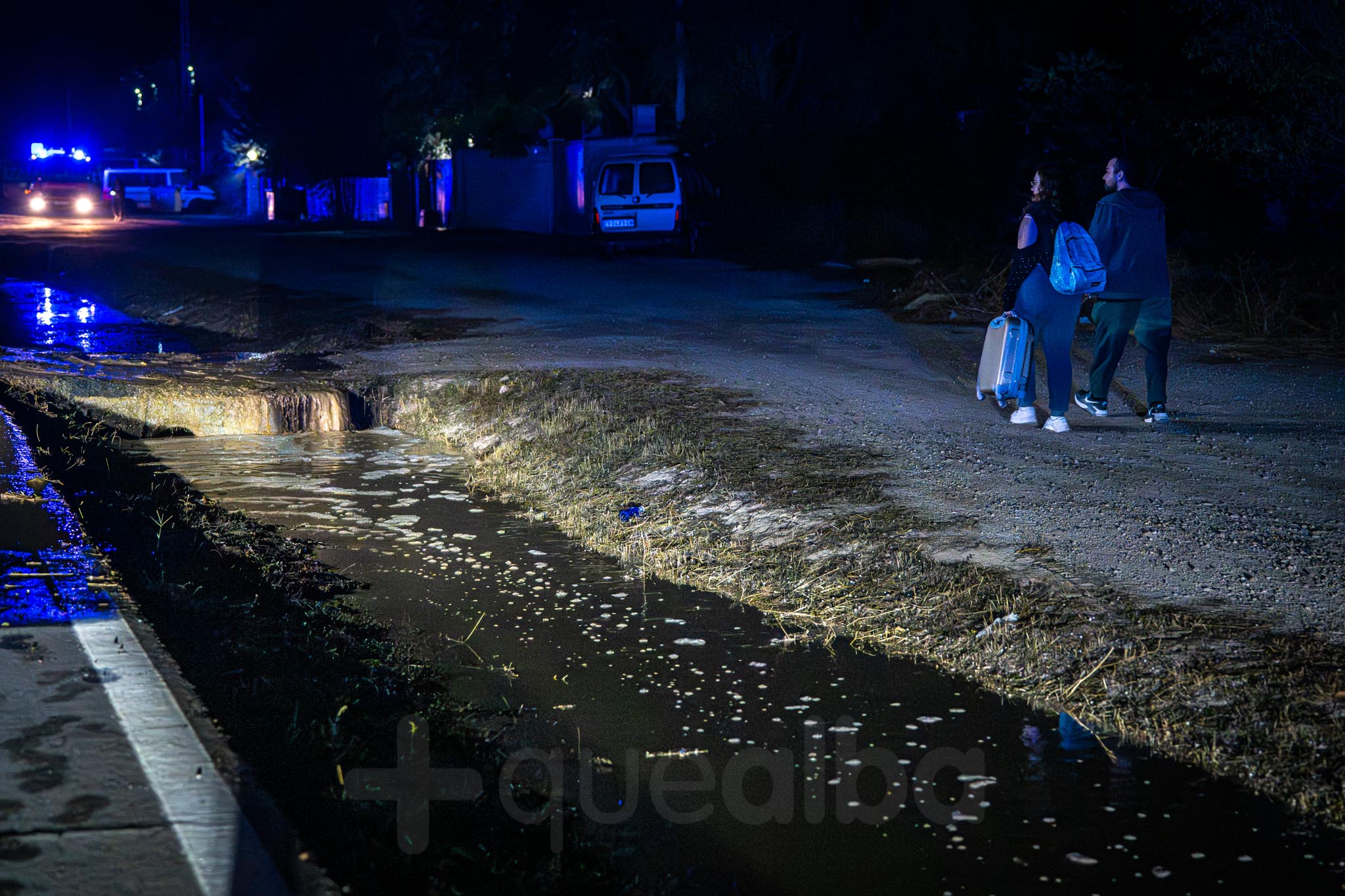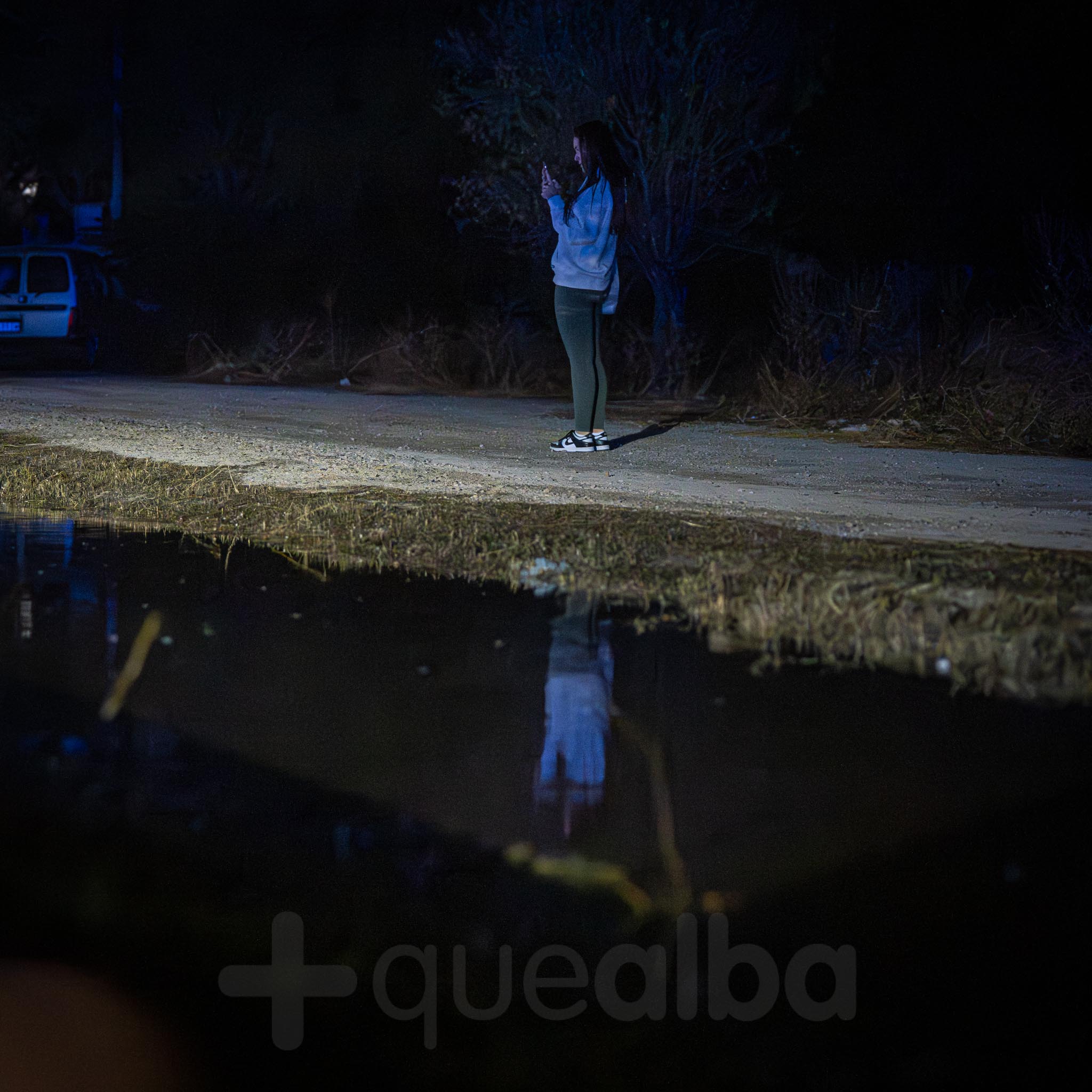 Los primeros vecinos que comenzaron a salir, temerosos, para ver el curso del agua, fueron los de las nueve familias que viven por la zona de La Casita. A uno señor le veíamos tratando de retirar ramas para que el agua no se acumulara alrededor de su casa; mientras otra vecina salía -en la ropa con la que estaba por casa y por su móvil como linterna- a comprobar la evolución de las inundaciones, porque estaba sola en casa con sus padres.