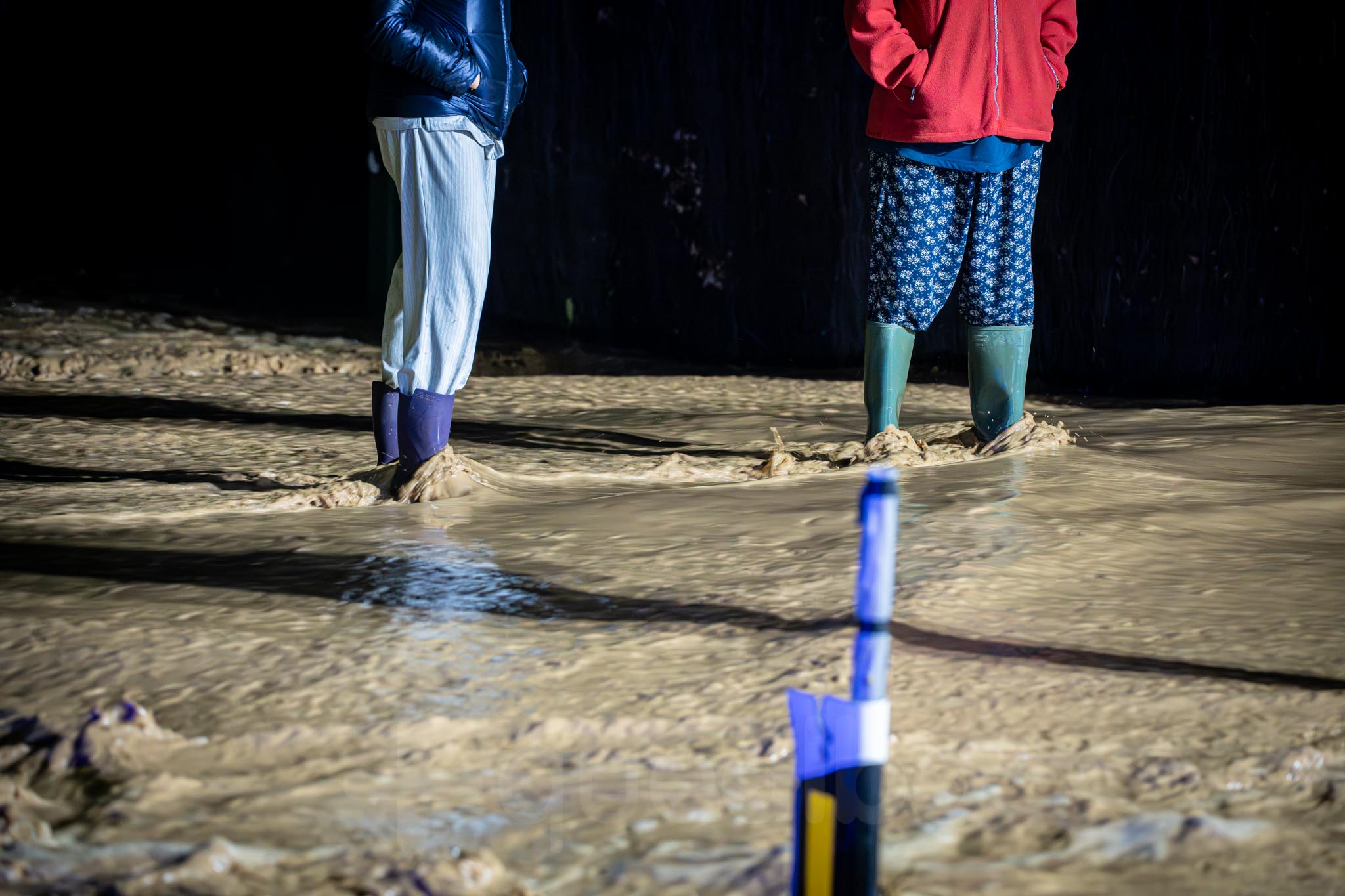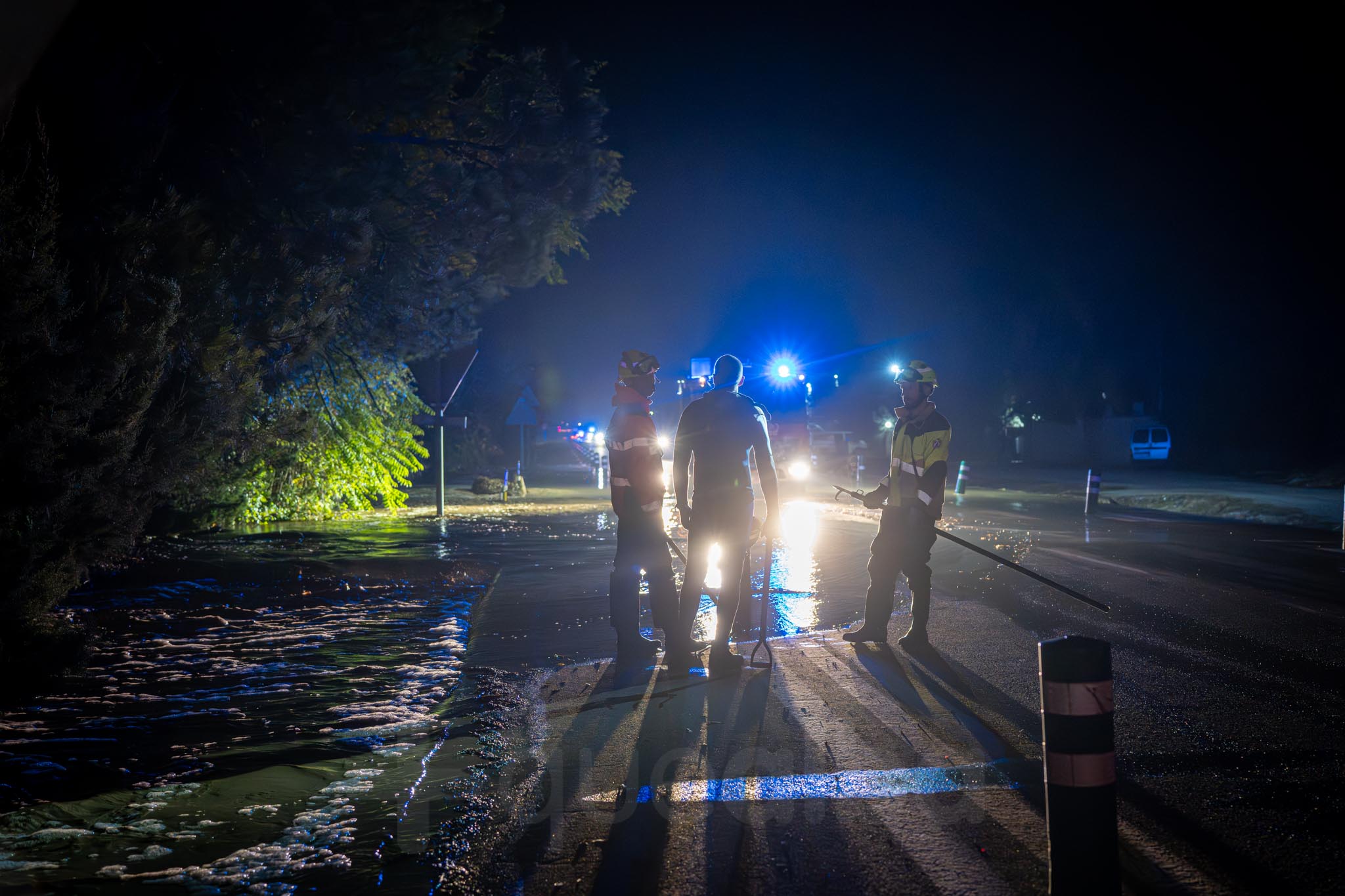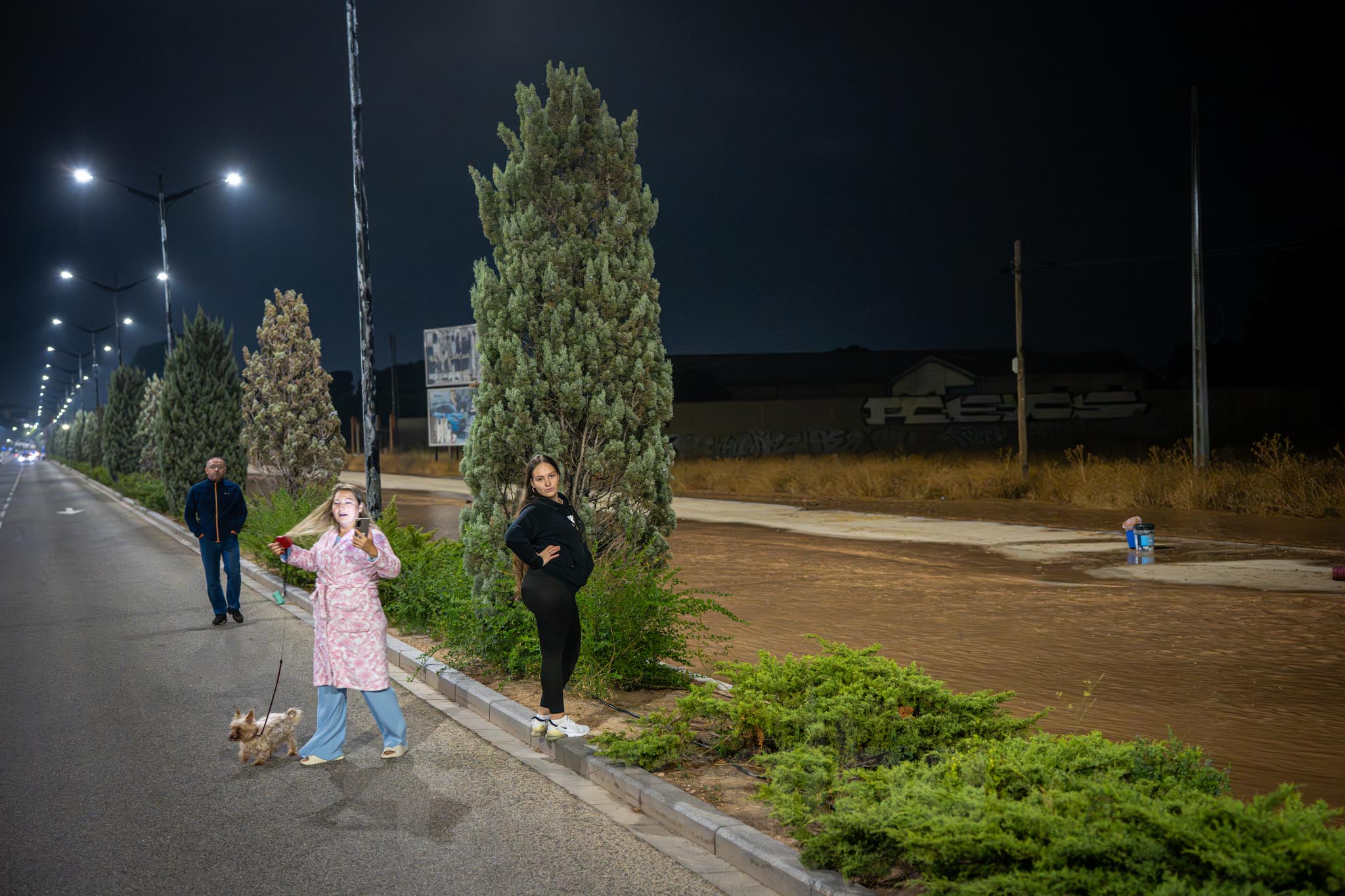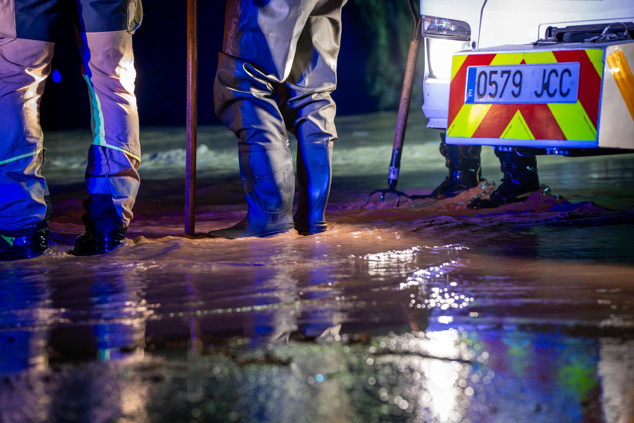 Los primeros vecinos que comenzaron a salir, temerosos, para ver el curso del agua, fueron los de las nueve familias que viven por la zona de La Casita. A uno señor le veíamos tratando de retirar ramas para que el agua no se acumulara alrededor de su casa; mientras otra vecina salía -en la ropa con la que estaba por casa y por su móvil como linterna- a comprobar la evolución de las inundaciones, porque estaba sola en casa con sus padres.