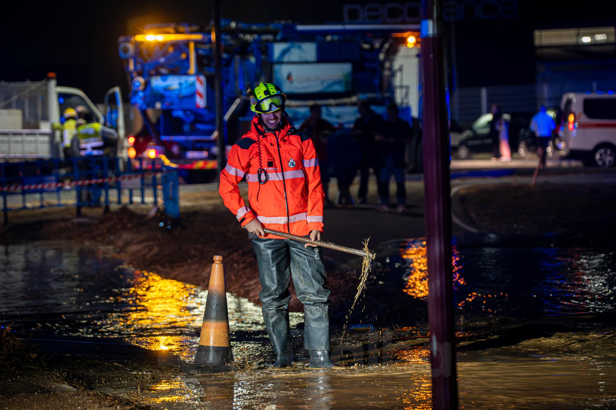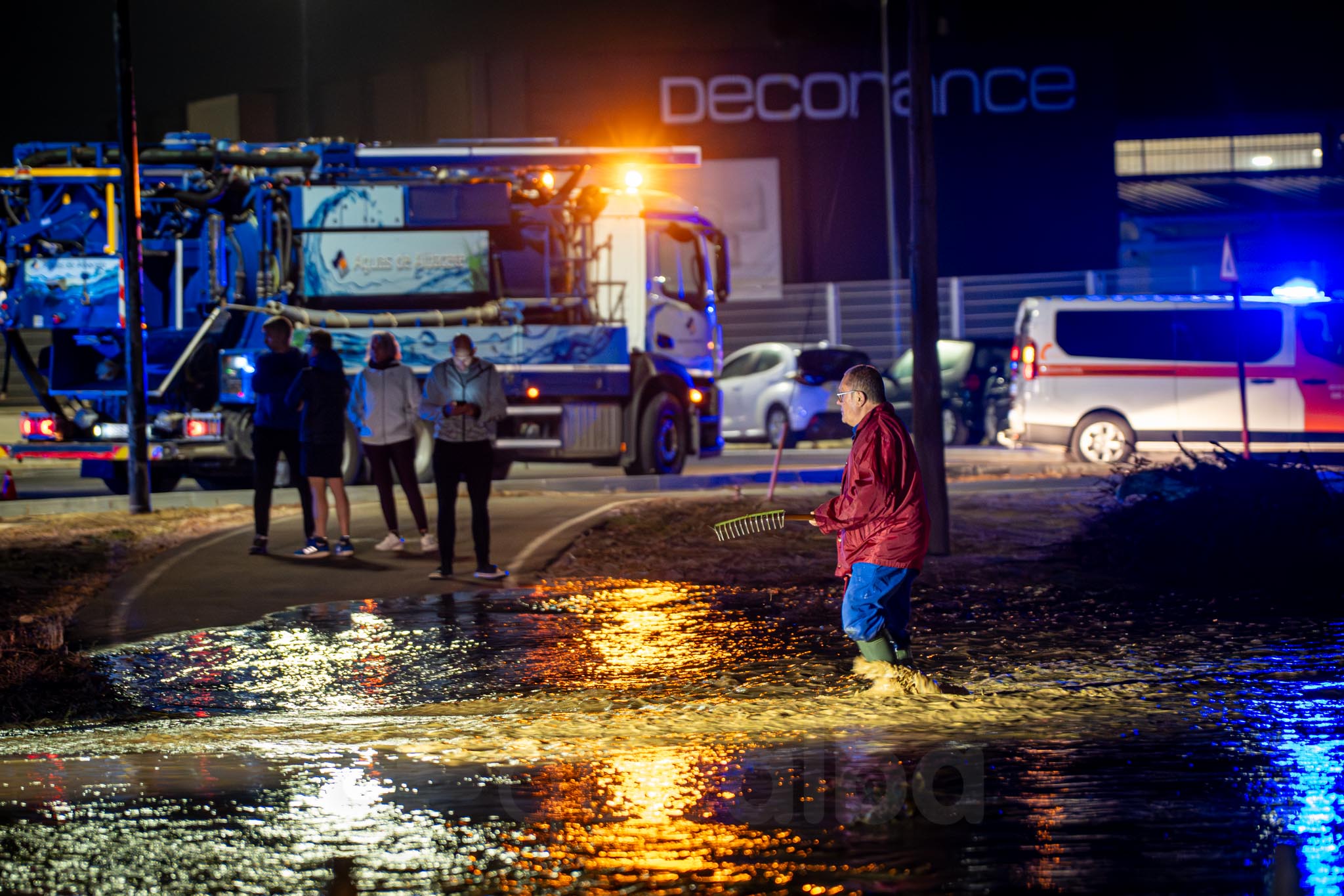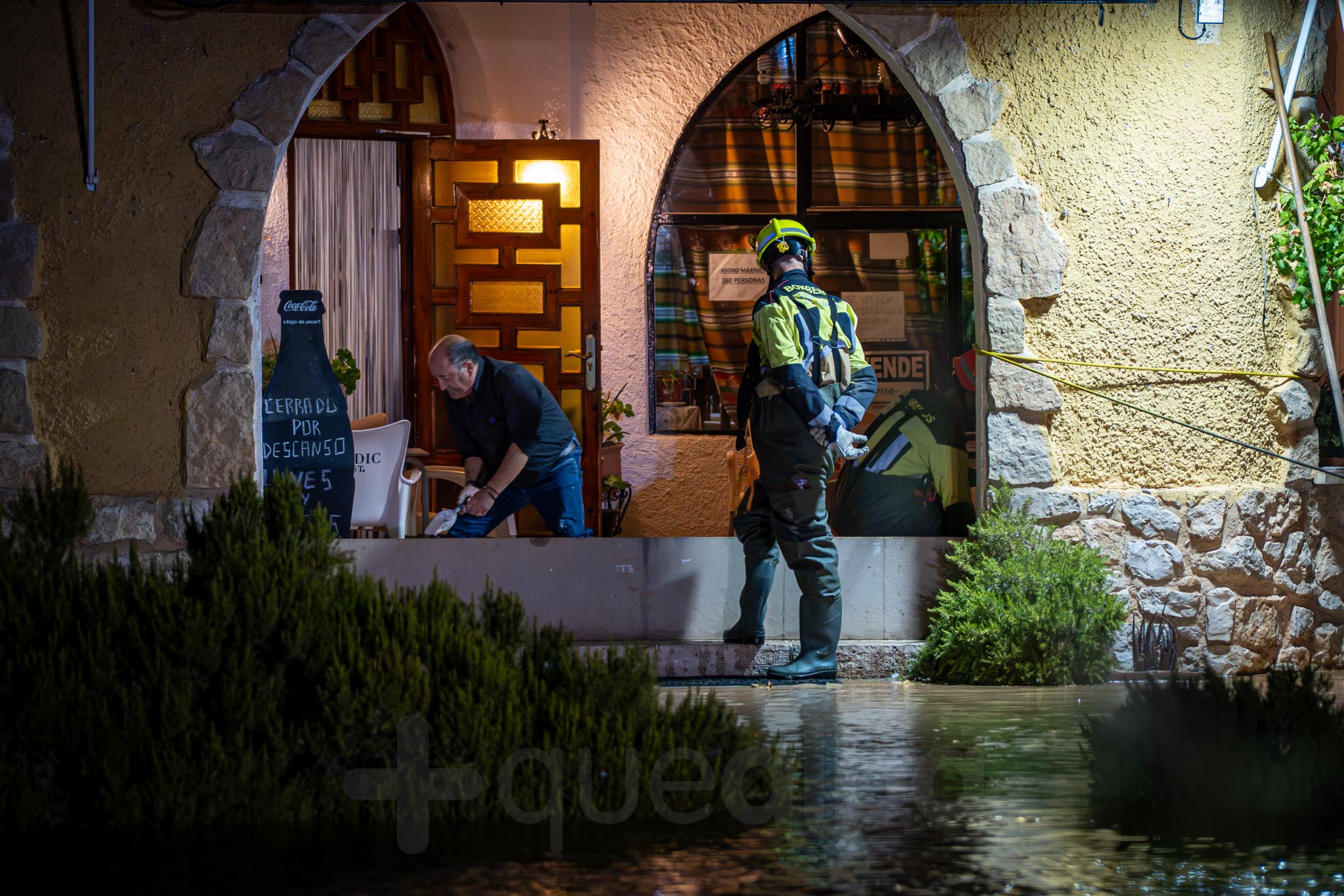 No fueron necesarios los rescates en piraguas a vecinos, que sí vimos en junio del año pasado, con inundaciones similares pero más fuertes; pero sí vivimos la incertidumbre y desesperación de Jesús y Angelita, los propietarios del bar La Casita que clamaban a los bomberos para que les dejaran cruzar a su establecimiento y poder asegurar sus entradas frente al agua. Finalmente, la policía y los bomberos accedieron y algunos de sus efectivos trazaron un camino seguro y acompañaron a Jesús en esta tarea.