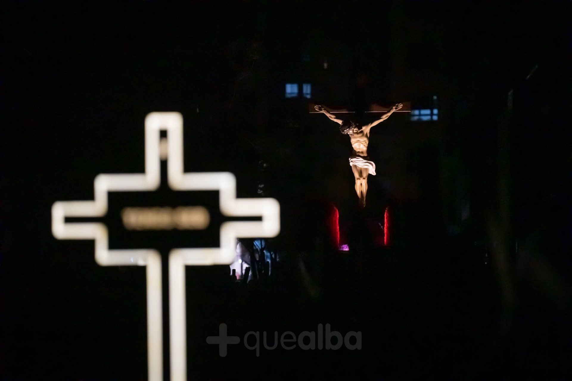La procesión del Silencio, una de las procesión de las que más cariño tienen los albaceteños cuenta como único protagonista al Santísimo Cristo del Consuelo y a sus cerca de quinientos penitentes que participan en este desfile cargando sobre ellos una cruz de madera ante la oscuridad y el silencio de la noche que sólo se rompe con el golpe de las alcayatas de los portadores que llevan al Cristo y el timbal que abre la procesión.
