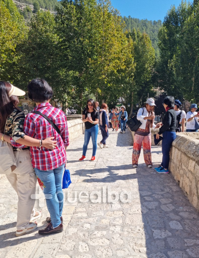 Al mediodía, su emblemático Puente Romano lo recorrían numerosos japoneses que se encontraban de excursión en esta atractiva localidad de la comarca de La Manchuela, en la provincia de Albacete.