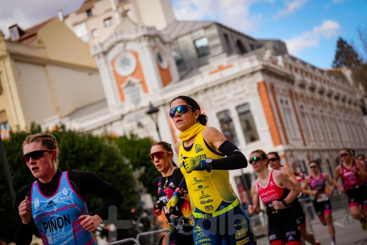 En la categoría femenina mandó Laura Villar, que llegó a meta con una renta de tres minutos de ventaja sobre la segunda clasificada, Laura Gallego. La triatleta del Club Triatlón Albacete Res tomó la cabeza de la prueba en el primer segmento a pie y llegó a la transición para la bicicleta con una ventaja que incrementó en el segundo segmento. Ya ampliamente destacada, pudo tomarse con más calma el último tramo de carrera a pie y la entrada a meta. El tercer cajón del pódium de la categoría femenina fue para Irene González Martí.