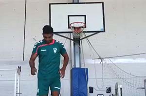 71 Impresionante canasta la que hace Jona en este video que ha colgado en su perfil de Twitter, con un balón de fútbol. Lo ha difundido con el mensaje «tu en baloncesto nunca serías bueno.. me decían».