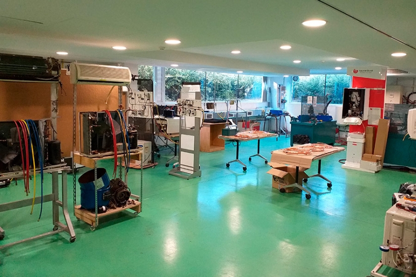 Precisamente, el sábado pasado, día 25 de mayo, 30 alumnos profesionales del sector se examinaron en este aula para acreditarse en el Reglamento de Instalaciones Térmicas en Edificios y en Manipulación de Gases Fluorados con carga de hasta 3 Kgs.