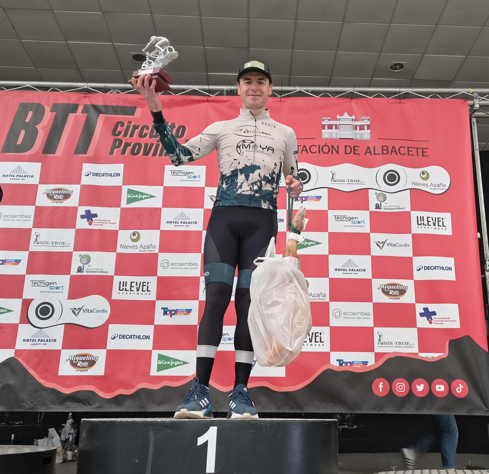 En el recorrido corto, los campeones fueron Cándido Silla Baixauli (Independiente) y María José Soriano Olivares (Independiente). En la categoría junior venció Ezequiel Sáez Gramage (Club Ciclista Montealegre), que además se llevó el premio de Studio Pilates Nieves Azaña. Almudena Jiménez Martínez y Ramón Ramírez Sierra, ambos del Bicialmuerzo, ganaron en la categoría de parejas mixtas. El puesto 71 en meta y el correspondiente premio de la Hermandad de Donantes de Sangre de Albacete fue para Fer Martínez Gabaldón (Nutriobelix). Tecnigen Sport, nuevo patrocinador que se ha incorporado este año al Circuito Provincial, repartió 4 lotes de complemento alimenticio ‘Recovery’ e ‘Isotónico’, algo que se repetirá en cada una de las pruebas del calendario a unas posiciones y categorías determinadas de antemano.