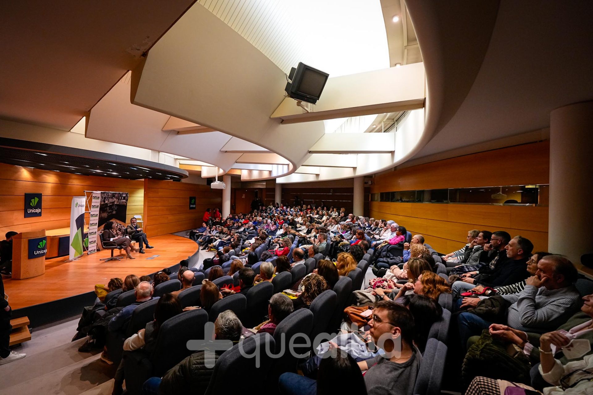 Llegaba a las 18,30 a Unicaja, en la céntrica plaza Gabriel Lodares, con el salón ya prácticamente lleno y muchas personas todavía esperando para poder entrar, aunque no hubo aforo para todos.