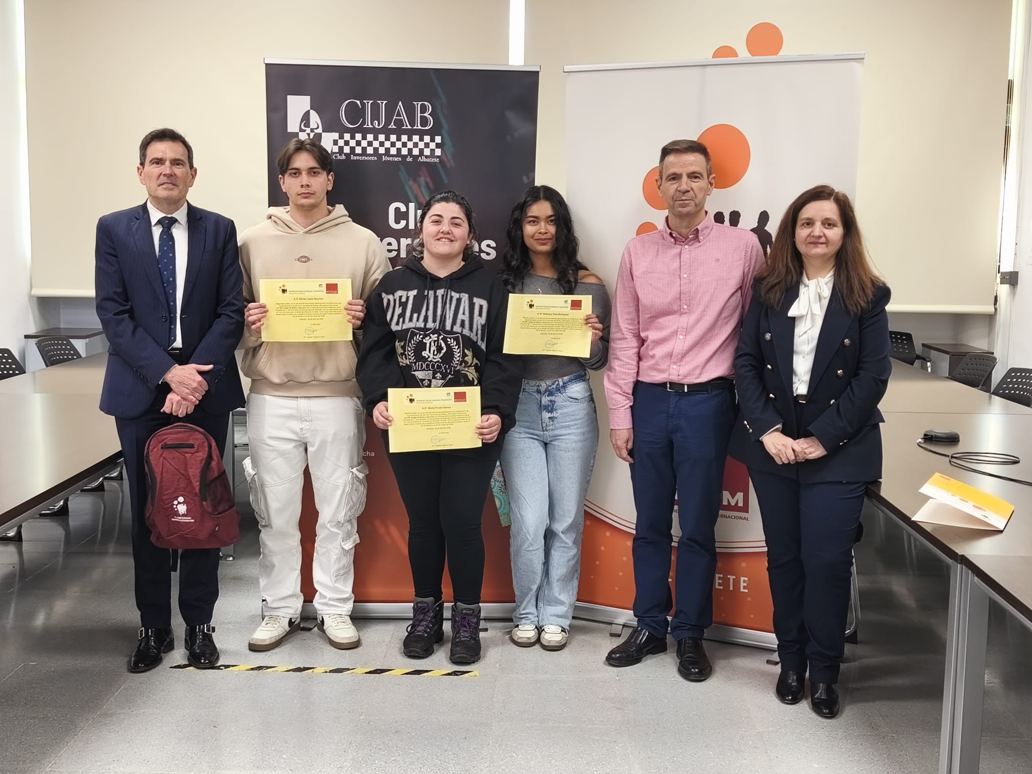 Estafany Paez Rodríguez, Daniel López Sánchez y Marta Picazo Gómez, participantes de las XXIX Jornadas de Bolsa y Mercados Financieros, han obtenido el primer, segundo y tercer premio, respectivamente, tras concursar en el XIX Juego de Bolsa vinculado a las jornadas. Por otro lado, Alexandra Quispe Barroso, Miguel Martínez Sánchez y Asen Castillo Martínez se han clasificado en primer, segundo y tercer lugar, respectivamente en la categoría de estudiantes de centros de educación secundaria de la provincia de Albacete. La entrega de premios tuvo lugar en dos jornadas.