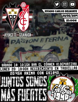 Gol Sur está organizando acudir al entrenamiento del Albacete Balompié este sábado para animar al equipo, de cara al importante partido del lunes frente al Granada, así como recibir al equipo el día del partido, a las 19 horas, en las taquillas del estadio.