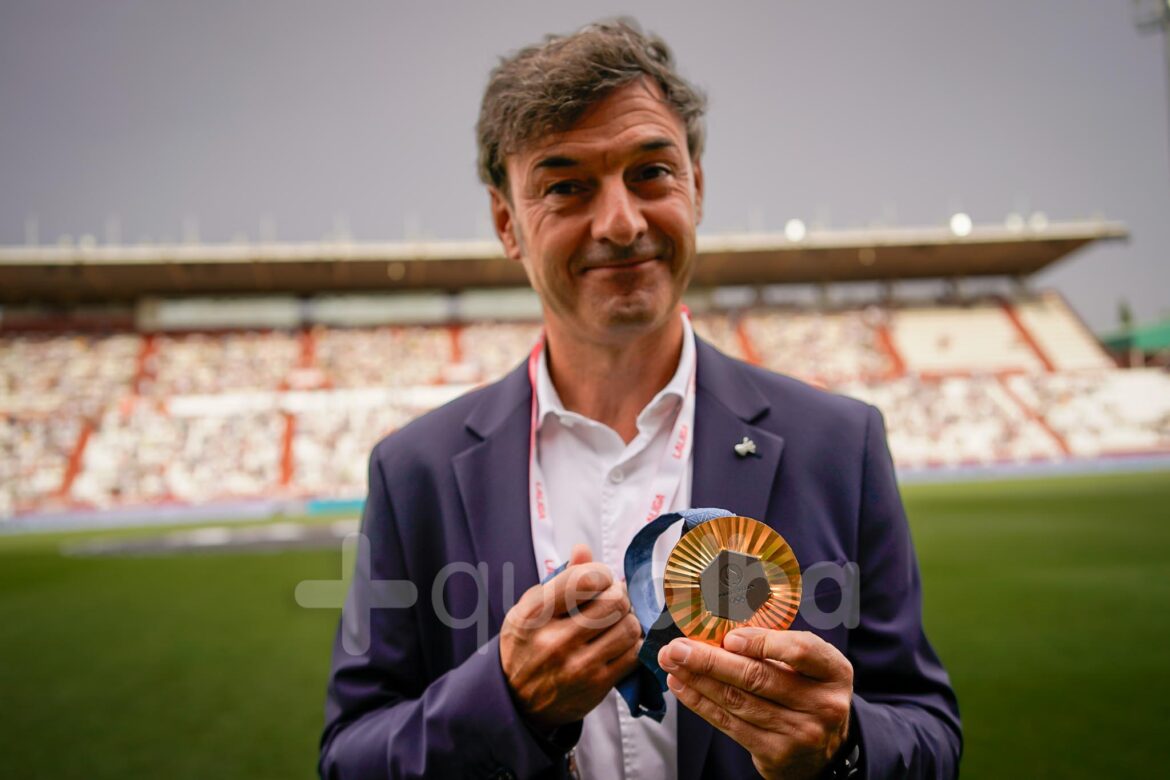El albaceteño Santi Denia recibía este domingo un más que merecido homenaje en la que siempre será su casa, en el Carlos Belmonte. En los prolegómenos del Albacete-Elche, el entrenador de la Selección Española de Fútbol que ganó el oro en los Juegos Olímpicos de París, recibía un homenaje, con el Belmonte en pie y rendido en aplausos al que es un gran embajador de esta tierra.