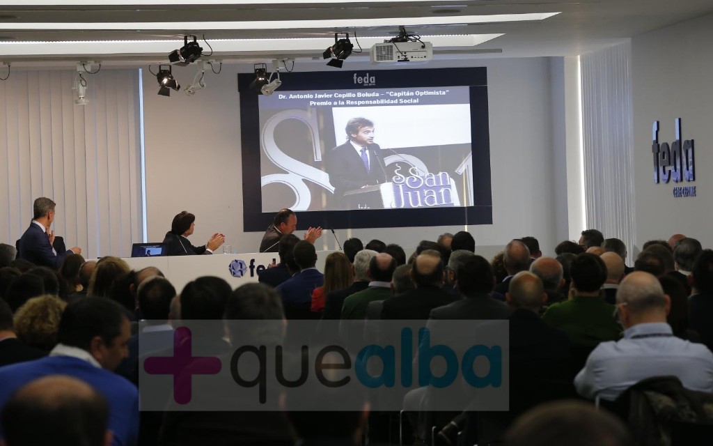 En 2018, el Dr. Antonio Javier Cepillo Boluda fue el merecedor del Premio a la Responsabilidad Social en los Premios Empresariales San Juan’2018-XIX Edición, de FEDA. De la mano de la Obra Social “la Caixa”, y en concreto de la directora territorial de CaixaBank, Mª Jesús Catalá, el joven pediatra recogió el Premio en la Gala del pasado 22 de junio, celebrada en el Palacio de Congresos “Ciudad de Albacete”. Un doctor que emocionó a todos por su compromiso y entrega a la pediatría. Un Premio que se inició desde el convencimiento de una estudiante de Medicina de la labor del chico de la cuatro P: persona, pediatra, paciente y payaso.