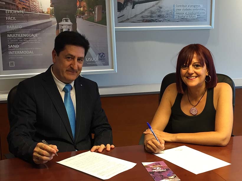 Albacete, 13 de junio de 2017.- La presidenta de la Asociación de Periodistas de Albacete, Ana Martínez, y el director financiero de Ingenia Soluciones, José Talaya, han rubricado esta mañana el acuerdo de colaboración al que ambas entidades han llegado y por el que todos los miembros de la APAB obtendrán una importante ventaja económica en el abono anual del servicio de préstamo de bicicletas en la ciudad de Albacete.