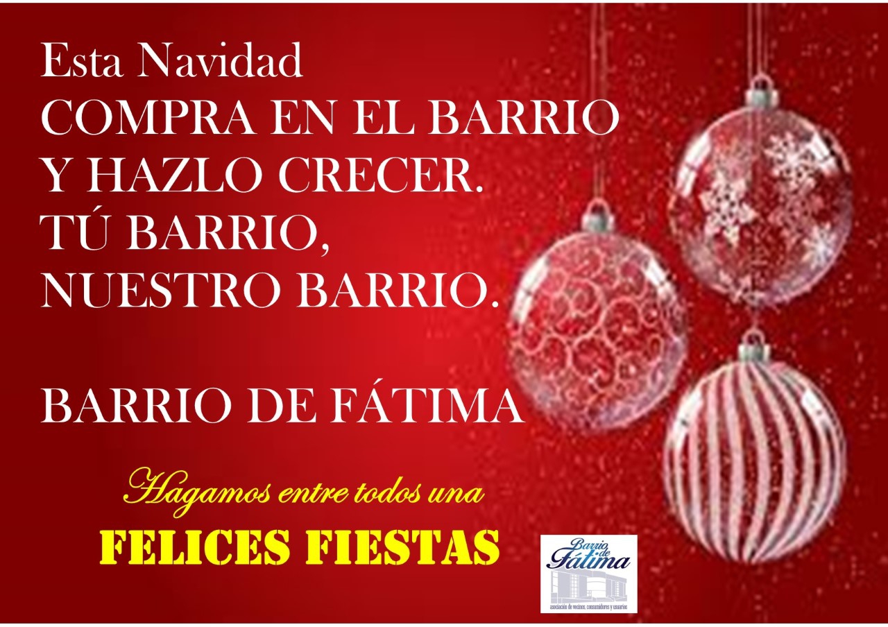 La Asociación de vecinos del Barrio Fátima ha ideado una cartelería para redes sociales que sirva como acicate para impulsar las compras navideñas en el pequeño y mediano comercio de nuestro barrio.
