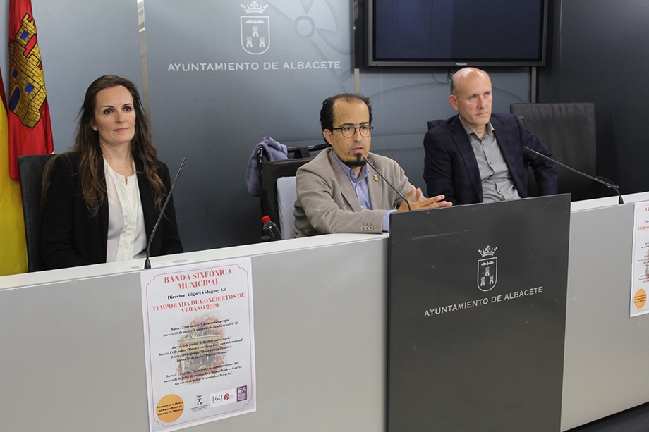El concejal respónsale de la Banda Sinfónica Municipal del Ayuntamiento de Albacete, Federico Pozuelo junto al Director de la Banda Sinfónica Municipal, Miguel Vidagany, han presentado el ciclo de conciertos de verano que la Banda Sinfónica Municipal ofrecerá con entrada gratuita en el Parque Abelardo Sánchez y que comienzan hoy jueves 23 de mayo con un concierto bajo el título “Con nombre propio”