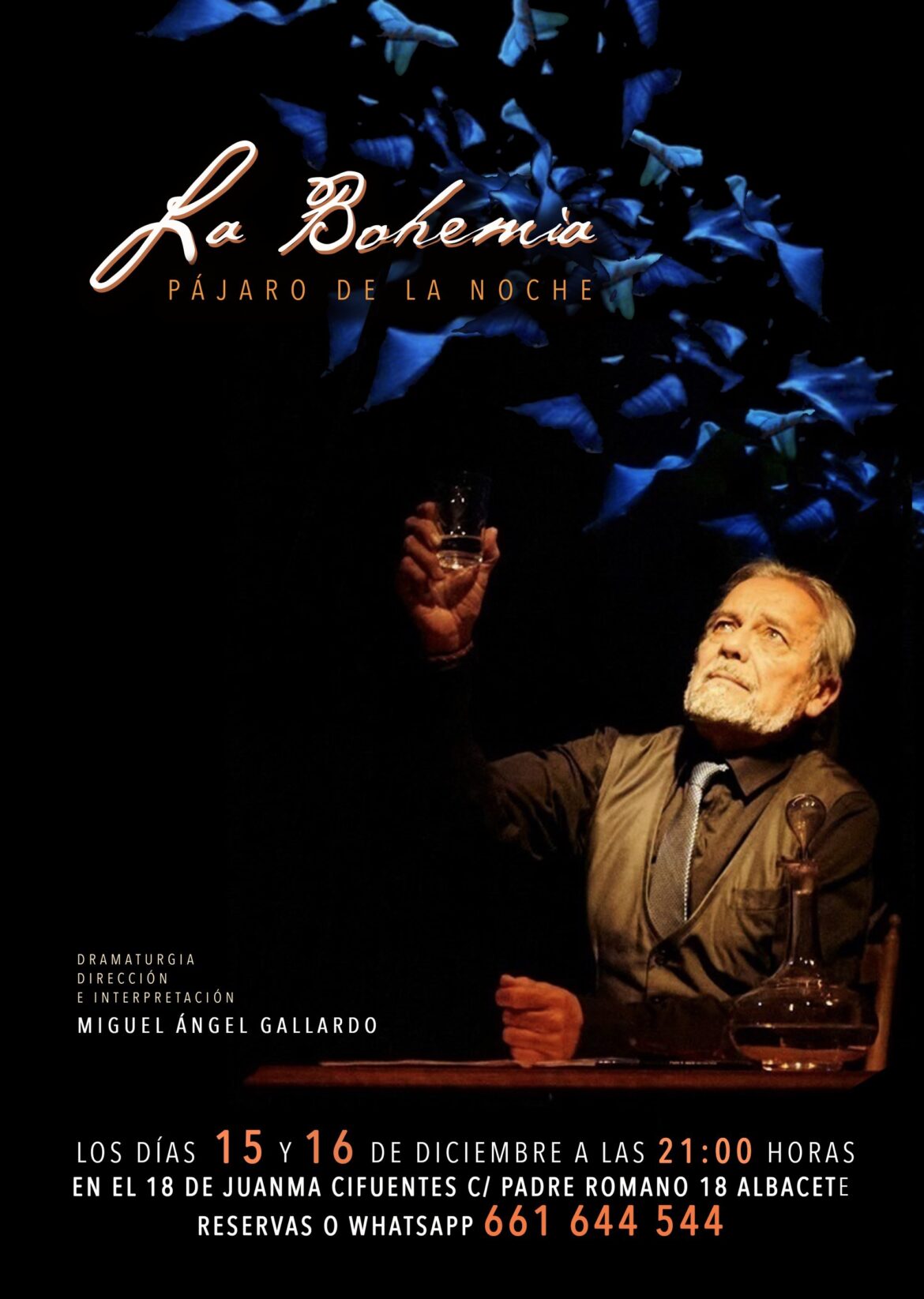 “LA BOHEMIA pájaro de la noche” llega a la Sala 18, de Juanma Cifuentes, con Miguel Ángel Gallardo. Se trata de una obra de teatro como homenaje a LA BOHEMIA, ese movimiento literario de los años veinte del S.XX.