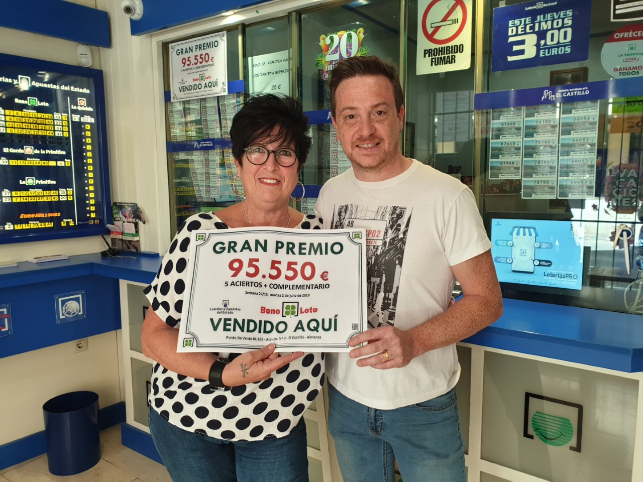 El boleto acertante de Almansa se validó en el Punto de Venta 0.1685, Administración nº 3 ubicada c/ Rambla De La Mancha, 42, es de 7 apuestas múltiple, validado en la modalidad pronosticada tipo Diaria. Y el importe total de dicho premio asciende a la cantidad de 95.550 euros.