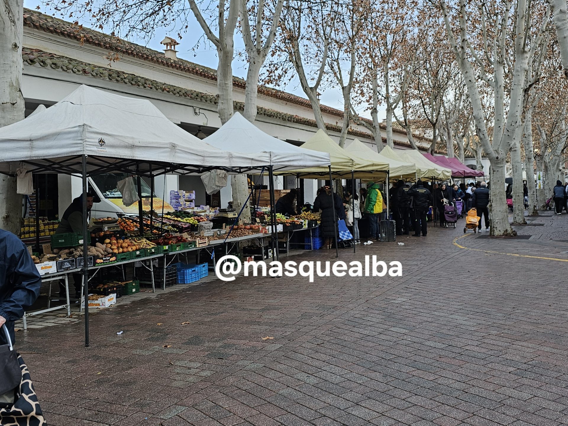 Dentro del Recinto sí han abierto los puestos de fruta y verduras.