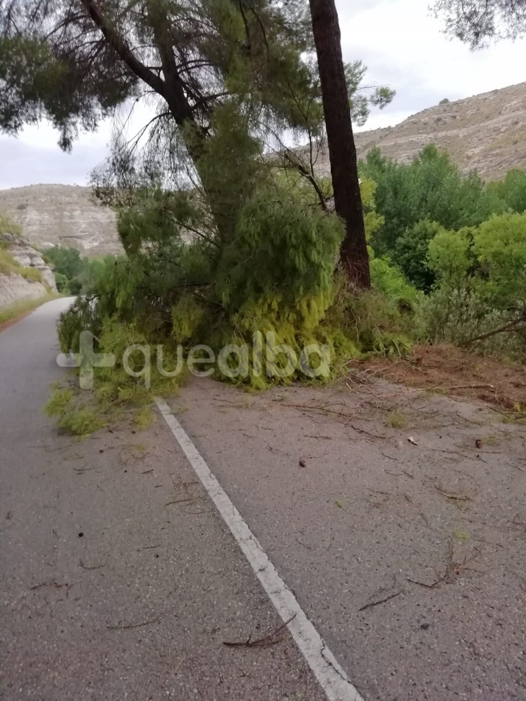 Tarde de incidentes en la provincia de Albacete con las fuertes tormentas y el aire que castigan a esta zona. En la AB-209, la carretera que une las localidades de Alcalá del Júcar y La Recueja, la caída de un árbol de grandes dimensiones provocaba el corte de la carretera, alrededor de las 19 horas de este viernes, 26 de agosto.