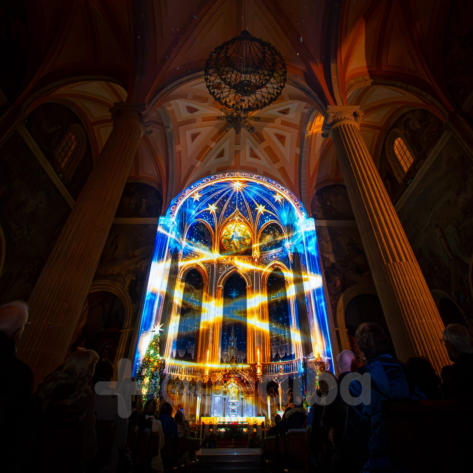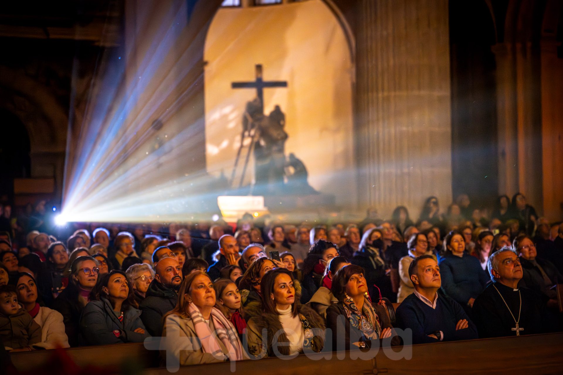 El alcalde ha agradecido la colaboración de la Diócesis de Albacete y la parroquia de San Juan, y el trabajo de los equipos artísticos y técnicos que han hecho posible el proyecto ‘Luz: el Ciclo Eterno’. Se trata de una pieza audiovisual inmersiva creada específicamente para la bóveda frontal de la Catedral, que en cinco minutos y medio de proyección realiza un viaje simbólico desde la oscuridad del origen, hasta la Estrella de Belén. La pieza se estructura en cinco actos que exploran el ciclo de la creación a través de luz, música y efectos visuales generativos.