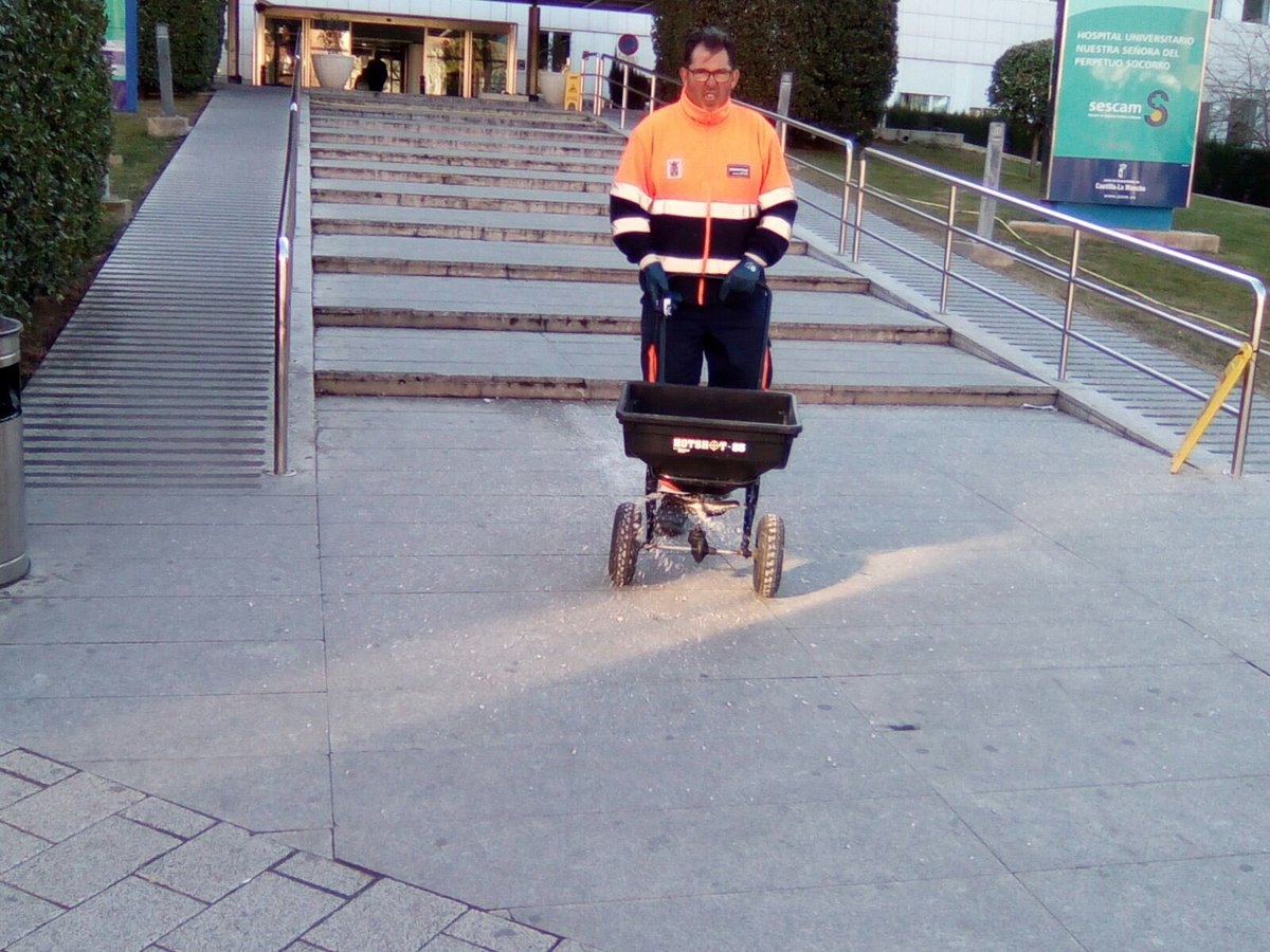 El Ayuntamiento de Albacete ha comenzado este sábado por la tarde a esparcir sal en los accesos a Hospitales o Centro de Salud para preparar la ciudad de cara a una posible nevada que podría llegar este domingo o el lunes, según las previsiones actuales de la AEMET.