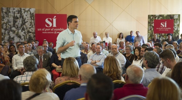 El líder de los socialistas, Pedro Sánchez, que aspira a ser presidente tras el 26 de junio, se dejó caer este viernes por la tarde en Albacete. Hacía un día excelente, se había dado un baño de masas por el centro –sin medios, a esto no nos convocaron- pero al Hotel Beatriz, donde iba a celebrar una asamblea abierta con ciudadanos no llegó del mejor humor.