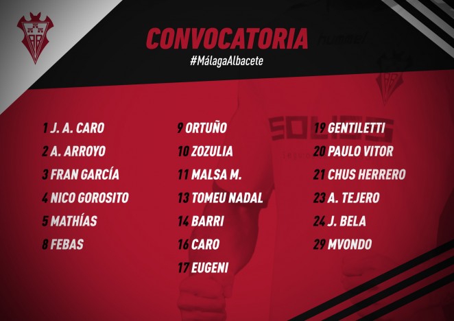 Los 19 jugadores citados saldrán por carretera desde la Ciudad Deportiva Andrés Iniesta hacia tierras andaluzas. Una vez allí se hospedarán en el NH Málaga, donde harán noche y desde donde partirán mañana camino al estadio de La Rosaleda para enfrentarse al cuadro blanquiazul.