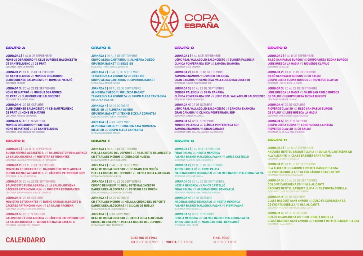 Ya se ha sorteado el calendario de la Copa de España de baloncesto, donde el Bueno Arenas Albacete Basket quedó encuadrado en el grupo E junto con dos equipos de primera FEB y otros dos de segunda FEB.