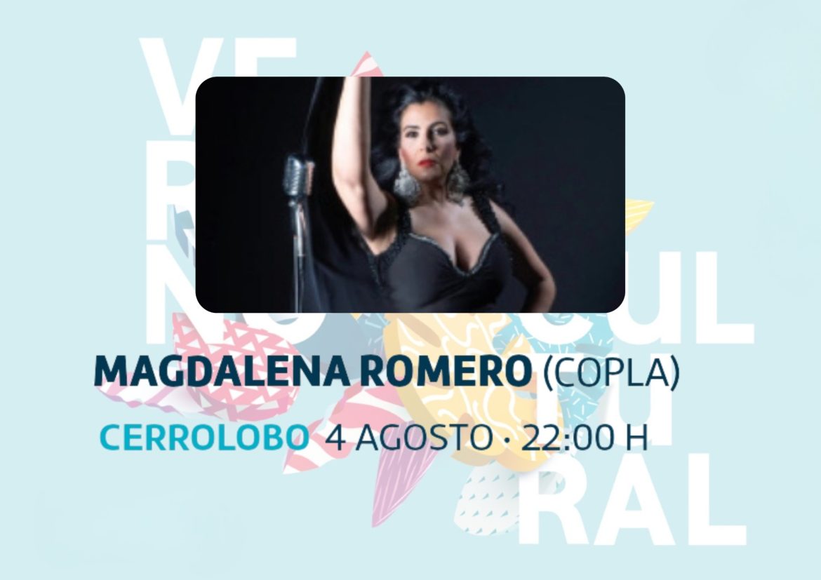 El Verano Cultural continúa acercando propuestas musicales a todos los rincones del municipio. Mañana lunes 4 de agosto, a las 22:00 horas, Cerrolobo recibirá a la artista Magdalena Romero, una de las grandes voces actuales en el género de la copla, que ofrecerá un concierto al aire libre lleno de sentimiento, fuerza interpretativa y pasión por la música popular.