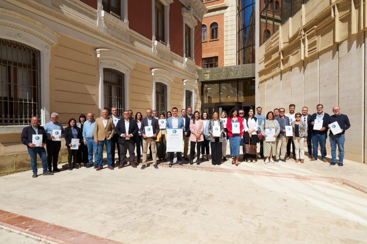 Es martes, en el Salón de Actos de la Diputación, tanto el presidente (acompañado del vicepresidente, Fran Valera, y de la diputada de Turismo y coordinadora de Desarrollo Rural, Raquel Ruiz) ha hecho entrega, junto a integrantes de todos los grupos de la Corporación de las Certificaciones que restaban por entregar físicamente, a representantes de las localidades de las tres últimas comarcas en completar el proceso de la mano de la institución provincial.