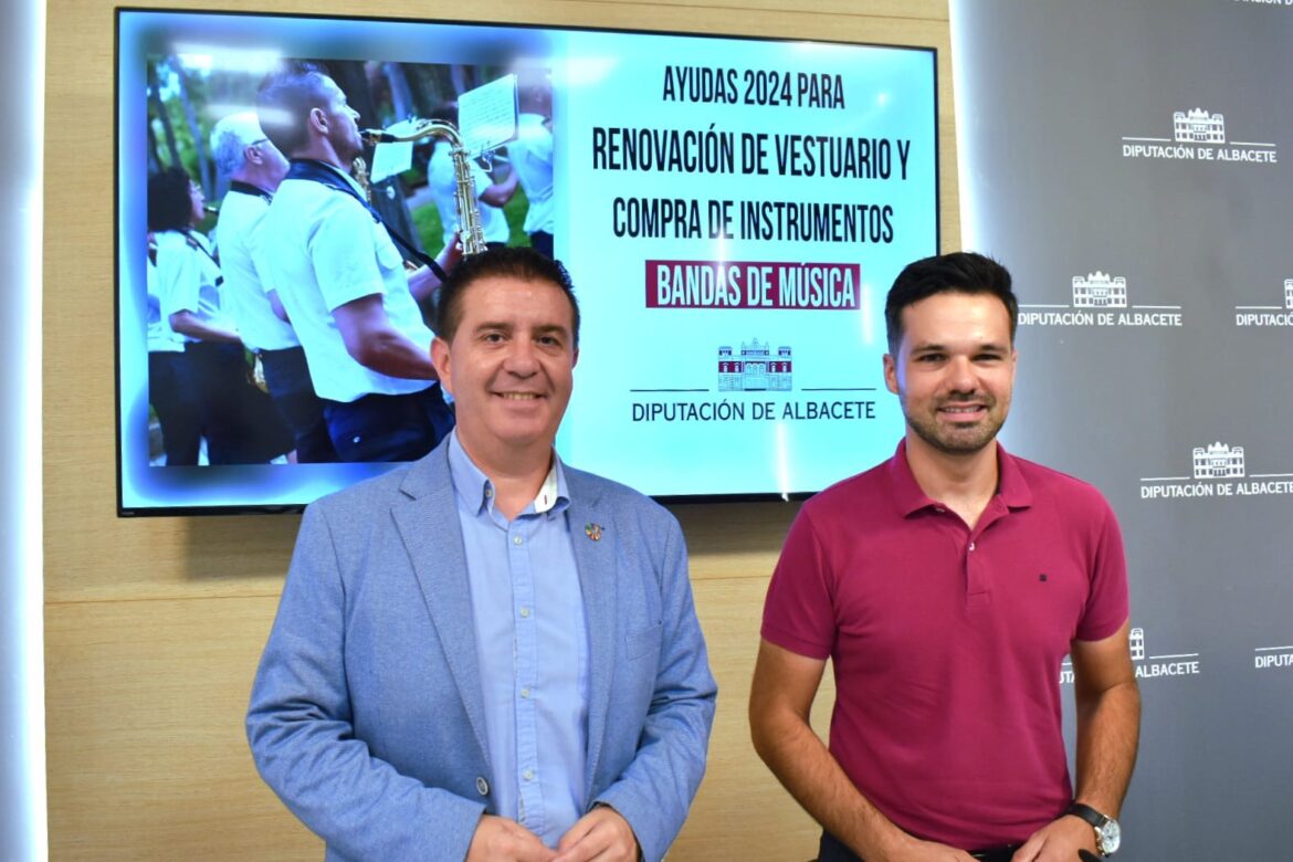 El presidente de la Diputación de Albacete, Santi Cabañero, y el diputado de Cultura, Miguel Zamora, han presentado este viernes las dos Convocatorias de Ayudas que próximamente tendrán a su disposición los ayuntamientos de la provincia para apoyar a las bandas y academias de música municipales. Una de las líneas es de nueva creación este año y, la otra, llega con ésta de 2024 a su tercera edición.