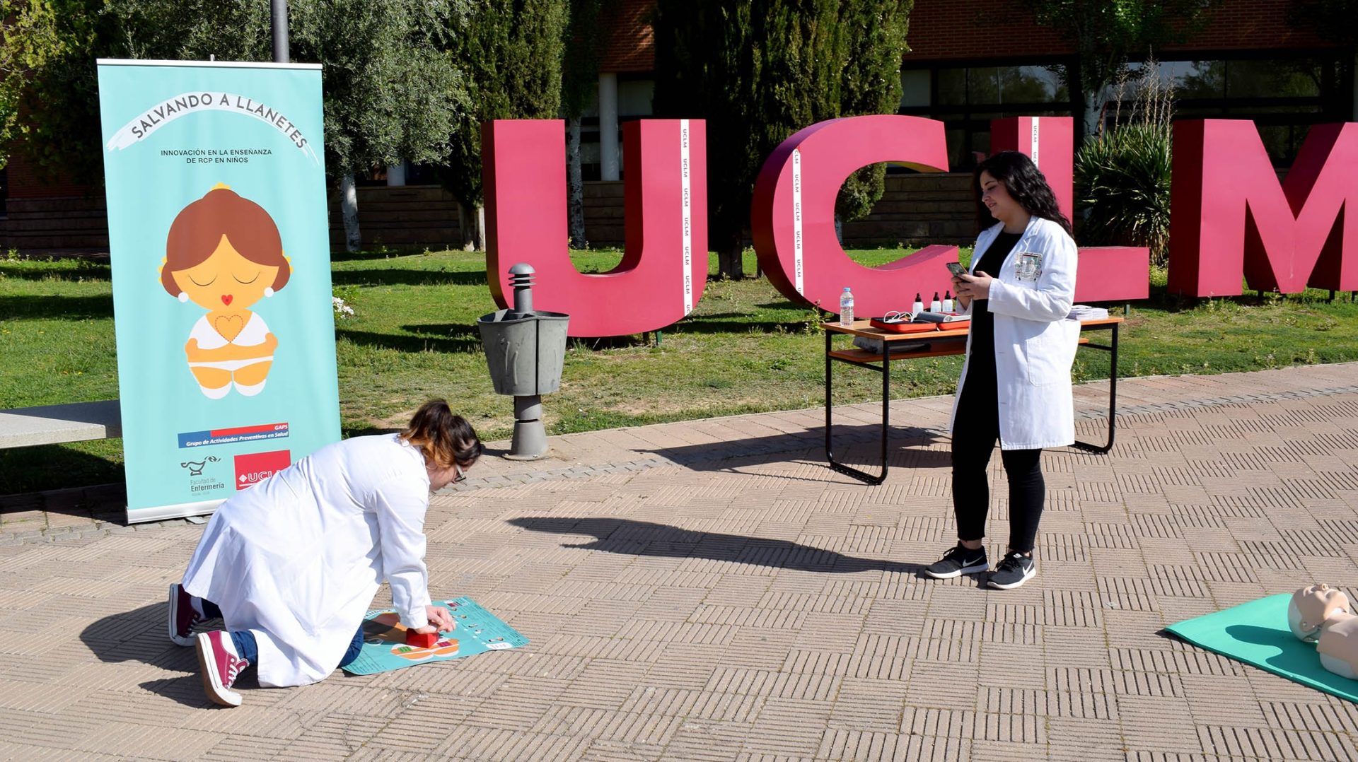 En total, en una primera fase, se impartirán 43 actividades formativas en otros tantos centros educativos de la provincia hasta que finalice el año, priorizando a aquellas localidades con menos de 3.000 habitantes y llegando a unos 500 docentes y a miles de alumnos y alumnas. Para ello, se utilizará el recurso ‘Salvando a Llanetes’, un simulador innovador para la enseñanza de esta técnica que consta de un corazón que al ser comprimido perpendicularmente y con la fuerza suficiente, emite un sonido a modo de feedback auditivo. El corazón se coloca sobre la figura Llanetes, una niña dibujada en un tapiz sobre el que está impreso el algoritmo de la RCP básica.