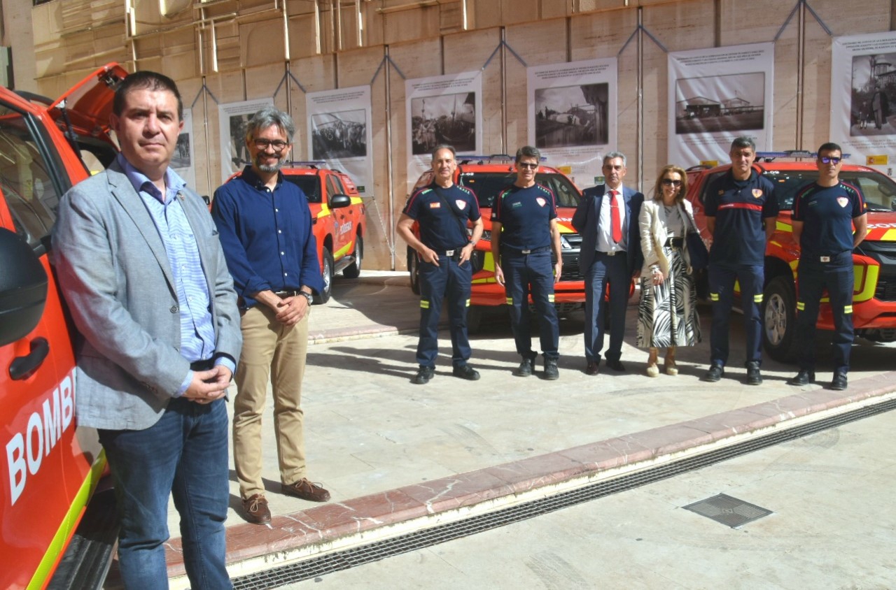 En una ‘estampa’ nada típica, la explanada de acceso al Palacio Provincial ha servido de ‘marco’ a la presentación pública de los 6 nuevos vehículos adquiridos por la Diputación de Albacete para mejorar la flota de su Servicio Especial de Prevención y Extinción de Incendios (SEPEI).