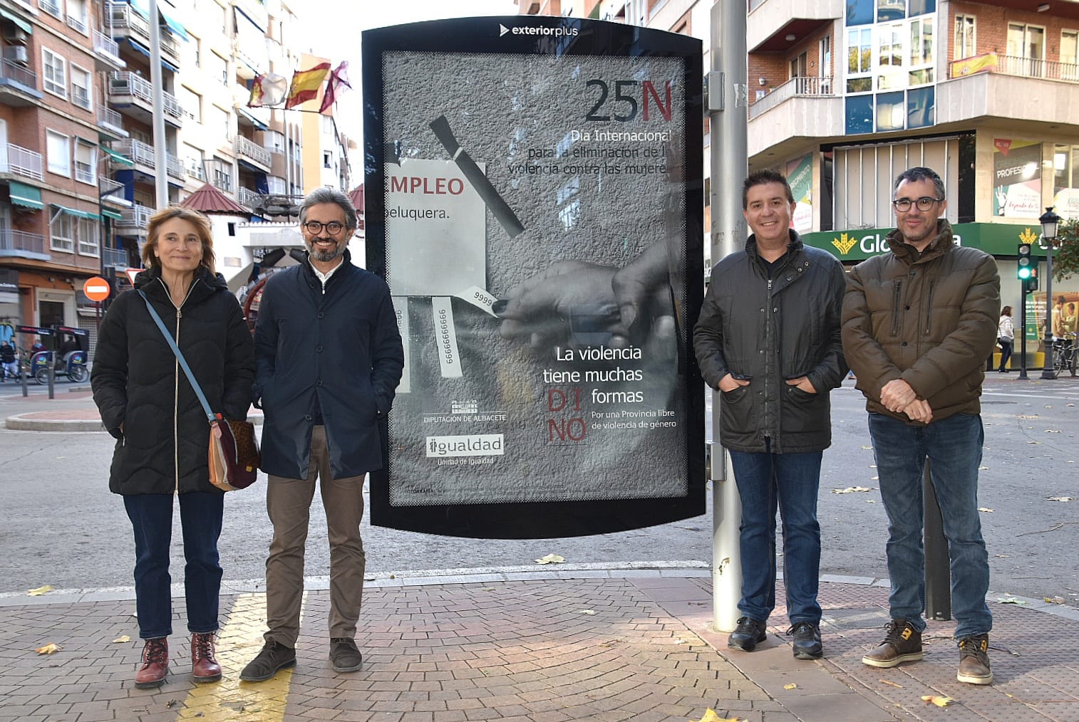 Hasta 15 marquesinas de bus de la ciudad de Albacete dan soporte a la campaña divulgativa de concienciación frente a las violencias que sufren las mujeres, impulsada por la Diputación en el marco de las actividades con motivo del 25N. Campaña que, además, la institución provincial ha hecho llegar también en digital a todos los Ayuntamientos del territorio para que puedan usarla, en el formato que deseen, en sus espacios y recursos públicos.