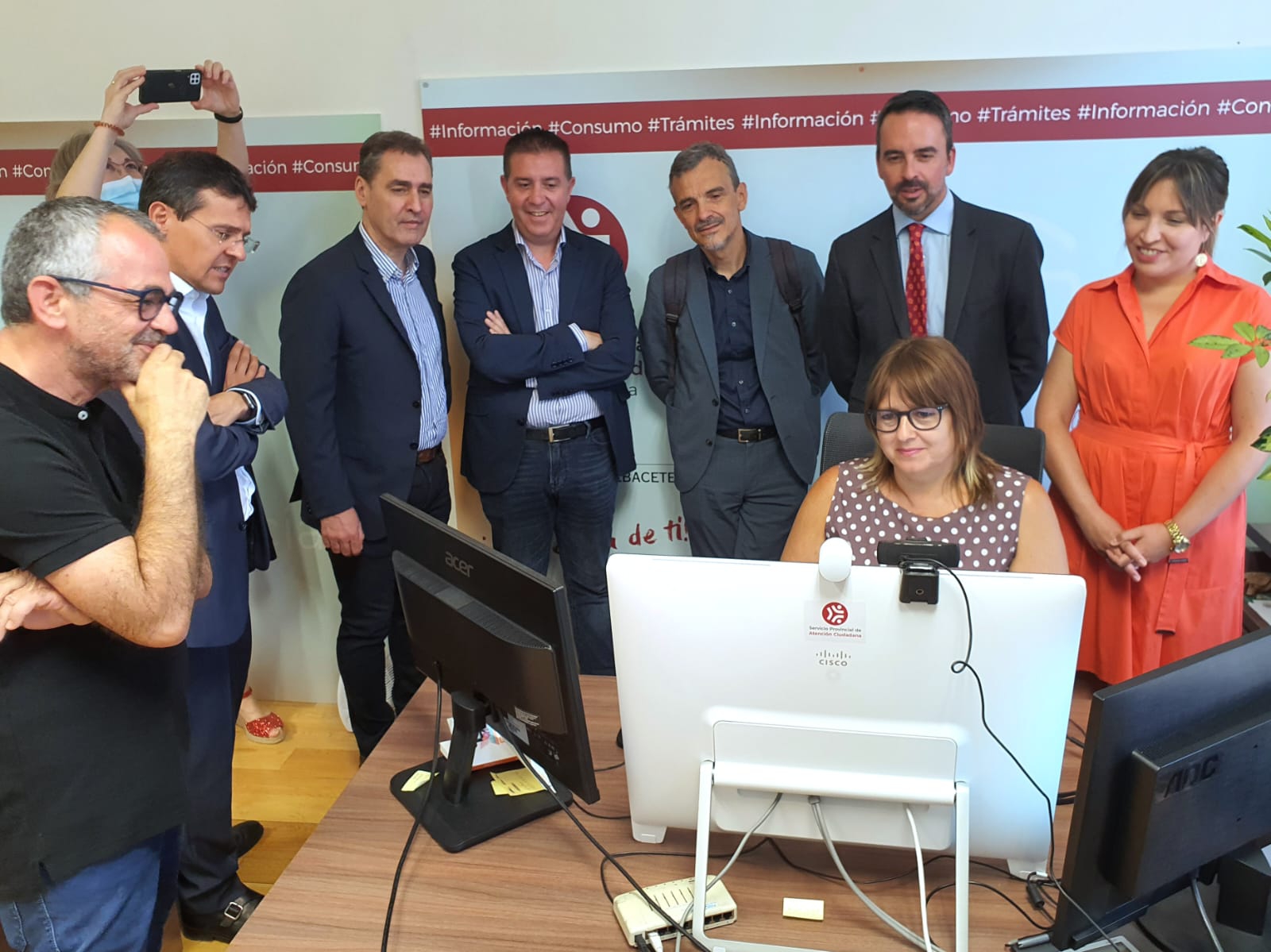 Ubicado en espacios independientes dispuestos en los Ayuntamientos, esta herramienta configurada para preservar la confidencialidad en la comunicación, consta de un equipamiento de videoconferencia (con una gran pantalla de 43” y otra informativa), un PC y recursos periféricos (impresora, escáner y tableta de firma); todo, controlado de forma remota desde el SAC.
