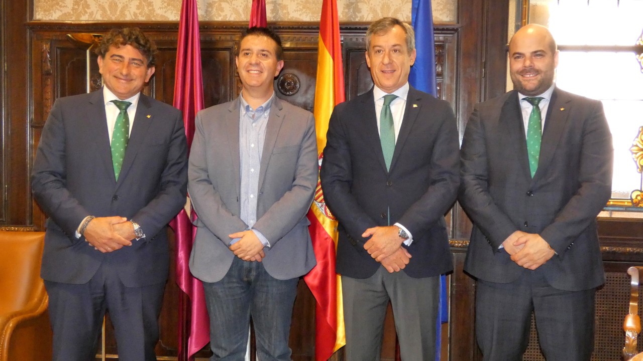 Santiago Cabañero ha recibido en su despacho del Palacio Provincial a una delegación de Eurocaja Rural encabezada por el presidente de la entidad financiera, Javier López Martín, que ha querido felicitar personalmente al presidente de la Diputación de Albacete por su renovación en el cargo al frente de la que es la X Corporación de la máxima institución provincial.