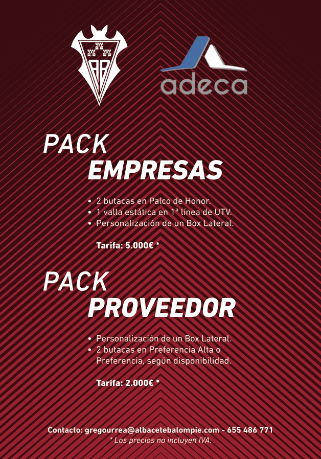 ADECA hace extensiva a todos sus socios la oferta especial que el Albacete Balompié S.A.D ha diseñado para que los empresarios de Campollano promocionen sus negocios. Descuentos de entre 1.000 euros y 3.000 euros sobre sus tarifas oficiales.