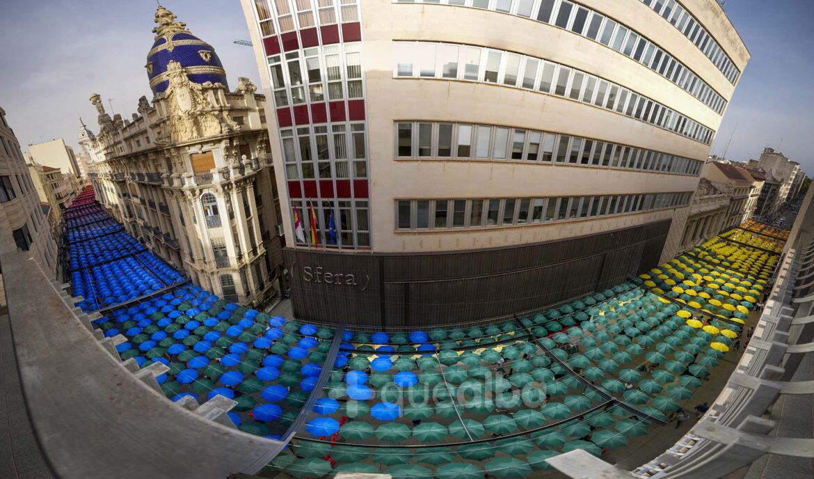 Los colores elegidos para el ‘Umbrella Sky’ de la calle Ancha de Albacete tienen una explicación. Y, por cierto, aunque en algunas redes se haya hecho viral que puede haber un tramo ‘blaugrana’, no es así. Cabe indicar que los colores elegidos representan los del arco iris, con su disposición. Y que los de color bermellón que se introdujeron se eligieron, como ha podido saber Masquealba, para representar el color que hay en el escudo de Albacete, de nuestra ciudad. Esa es la explicación a la disposición de colores en los paraguas que se han colocado en esta calle.