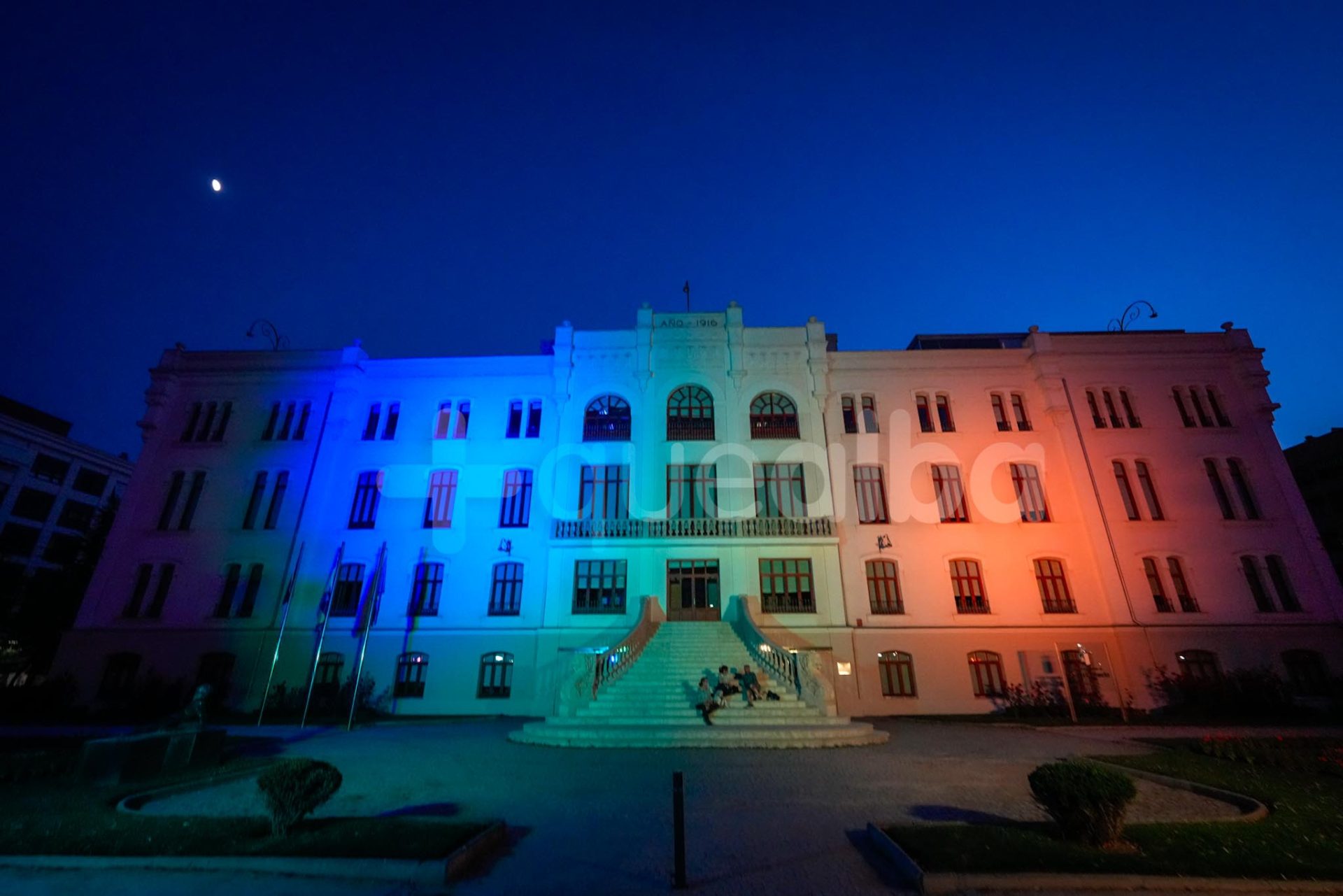 La Fábrica de Harinas, en el Paseo de la Cuba, y uno de los edificios de la Junta de Comunidades en Albacete, luce los colores de la bandera LGTBI en el Día del Orgullo.