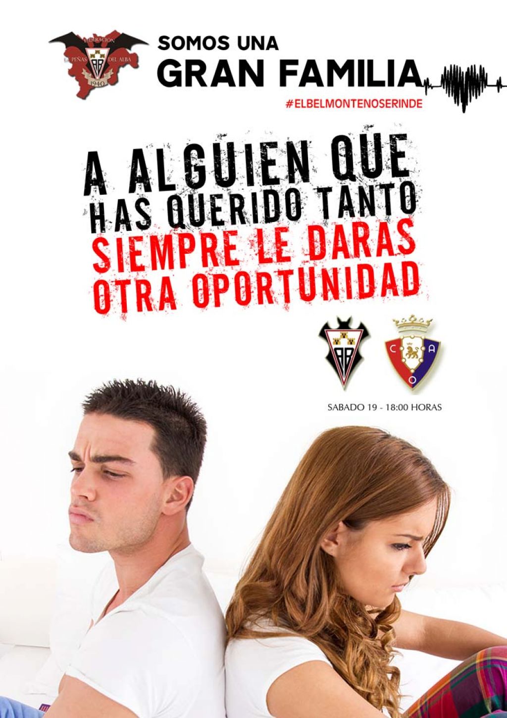 El cartel de hoy de la Federación de Peñas del Albacete Balompié para movilizar a la afición va sobre segundas oportunidades. «A alguien que has querido tanto siempre le darás otra oportunidad», dice el mismo.