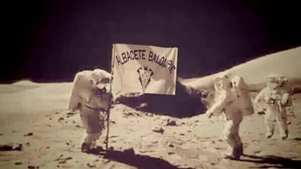 Desde la mismísima luna, dos astronautas que colocan la bandera del Alba allí están felicitando estos días la Navidad a todos los aficionados del club blanco.