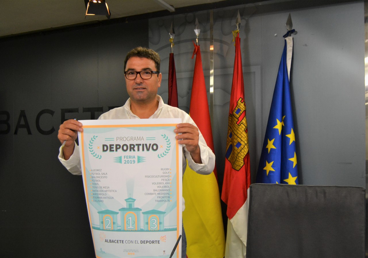 El concejal de Deporte, Modesto Belinchón, presentó esta mañana en rueda de prensa la programación de la Feria Deportiva 2019, que se caracteriza, subrayó, por su “calidad, variedad e intensidad, pues contempla 33 disciplinas deportivas y 40 eventos y actividades, que tendrán como colofón un campeonato de España en el que participará el 5 veces campeón del mundo en la modalidad de freestyle de motocross, el albaceteño Maikel Melero”.
