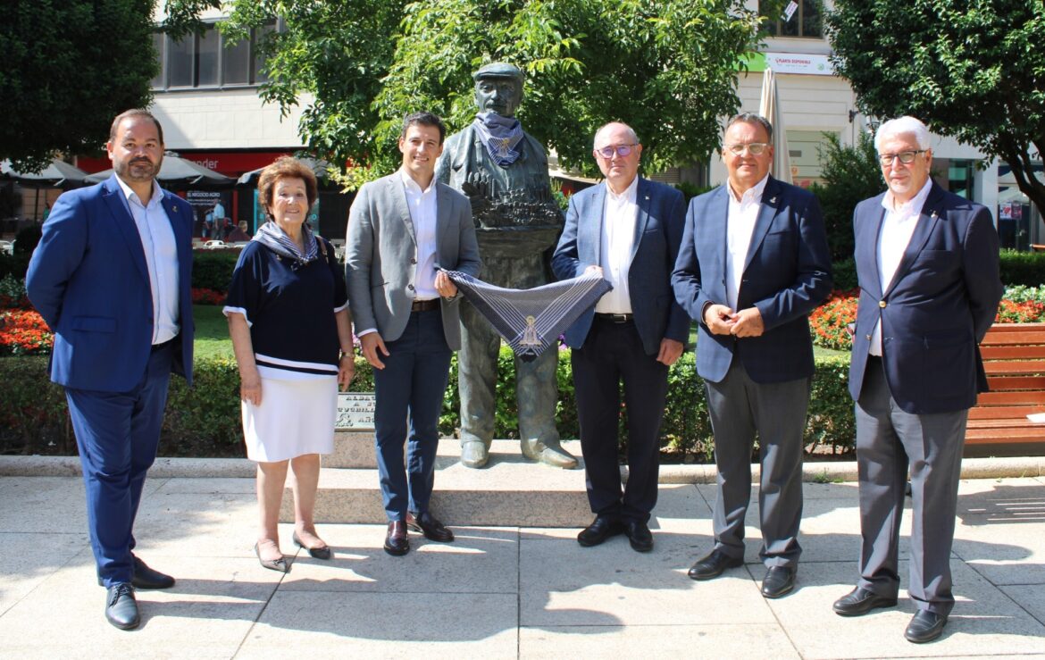 El lugar elegido para la presentación de este ‘Pañuelico Solidario’ ha sido la céntrica plaza de El Altozano, frente a la escultura del Cuchillero, y ha contado con la presencia del presidente de la Fundación Globalcaja y de la Real Asociación Virgen de Los Llanos, Herminio Molina, y Antonio Fernández-Pacheco, respectivamente, entre otros representantes de ambas organizaciones.