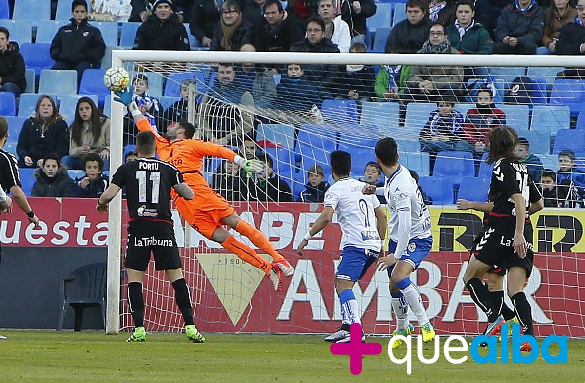 Antes del minuto 5 Juan Carlos sacó una mano milagrosa para evitar el gol local. Gran acción que evitó un mal arranque en La Romareda, dio confianza al equipo, que ha estado muy bien en la primera mitad y se iba empate a cero al descanso.