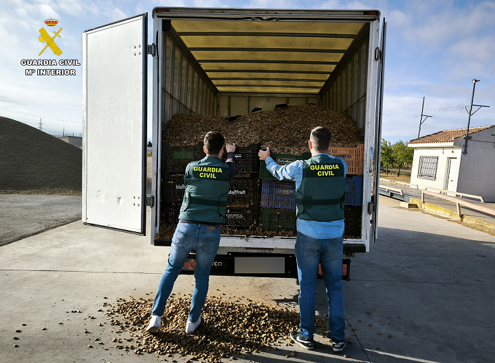 La Guardia Civil de Albacete detiene a dos personas por robar 5.400 kilos de almendra