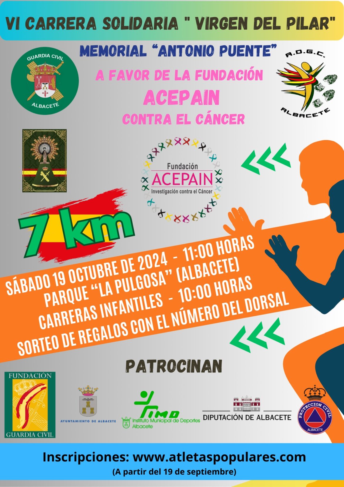 A las 11:00 horas del próximo día 19 de octubre, organizada por la Asociación Deportiva Guardia Civil de Albacete (ADGC), se celebrará la “VI Carrera Popular Virgen del Pilar”, actividad encuadrada dentro de los actos que celebrará la Comandancia de la Benemérita albacetense con motivo de la festividad de su patrona, la Virgen del Pilar.