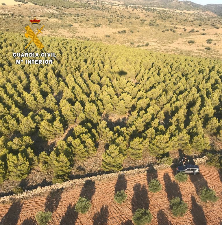 En estas labores de búsqueda participaron tres patrullas de la Guardia Civil y 40 voluntarios, entre vecinos, amigos y familiares de la desaparecida, a las que se sumó un helicóptero del Cuerpo de la Comandancia de Murcia, cuyos pilotos dieron la voz de alerta a los grupos organizados que, tanto a pie como en vehículos batían la zona, señalando la posición exacta donde se encontraba esta persona, que permanecía guarecida debajo de un pino.