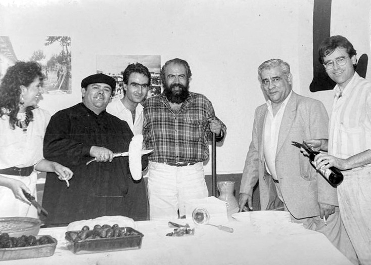 En la fotografía, tomada por el mítico Jesús Moreno, le vemos con integrantes del diario La Tribuna. Así están María Ángeles, de publicidad; Antonio ‘El Chato’; Antonio Avendaño, Bernardo Goig, Luis Parreño y Manolo Palacios.